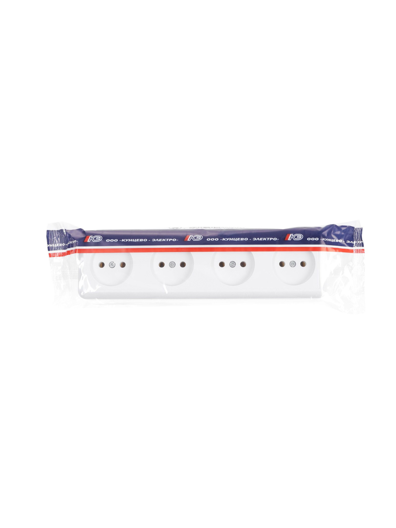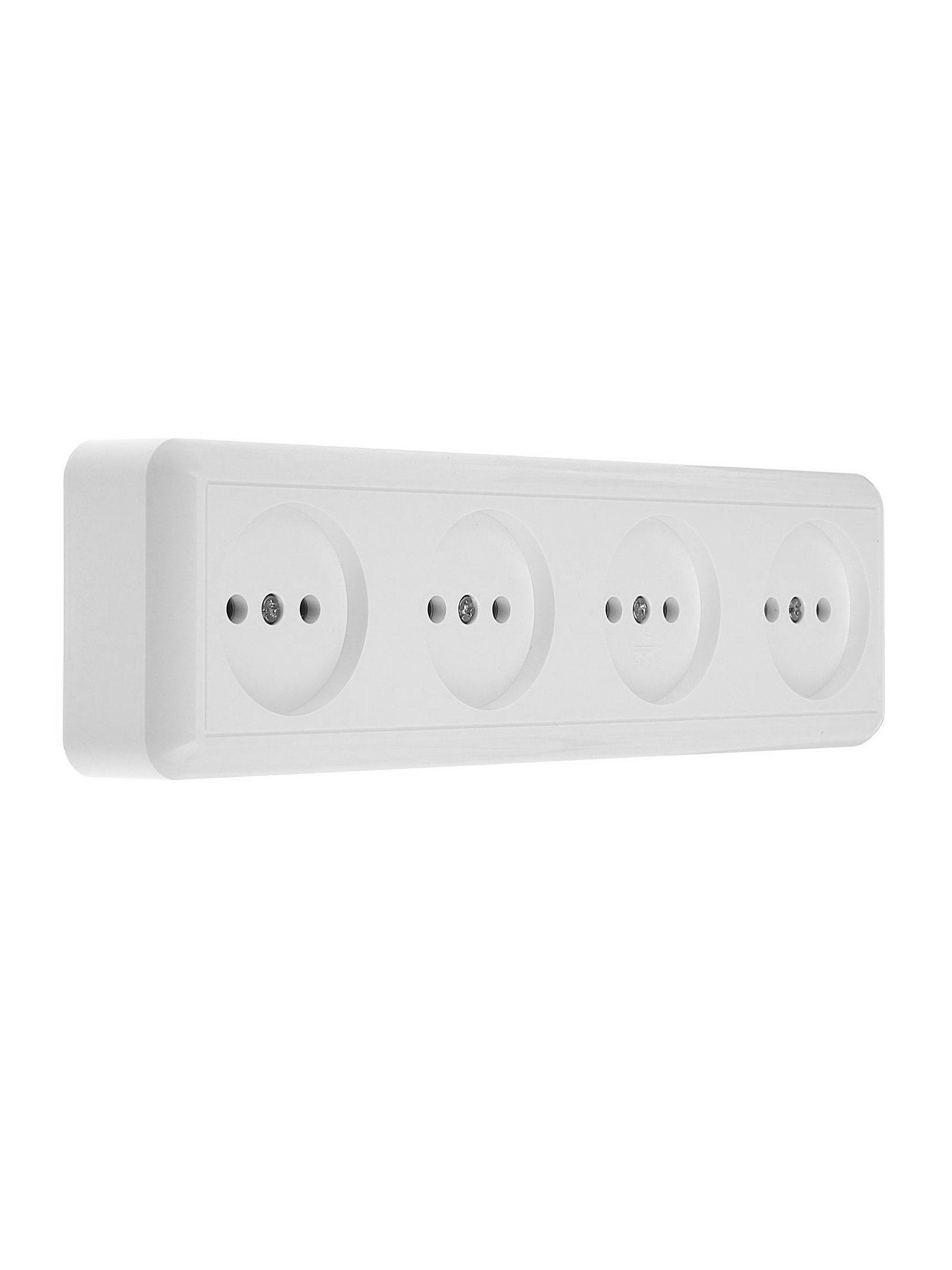 Розетка Оптима, четырехместная, 16 А, 250 В, без з/к, наружная, белая, Кунцево, Россия