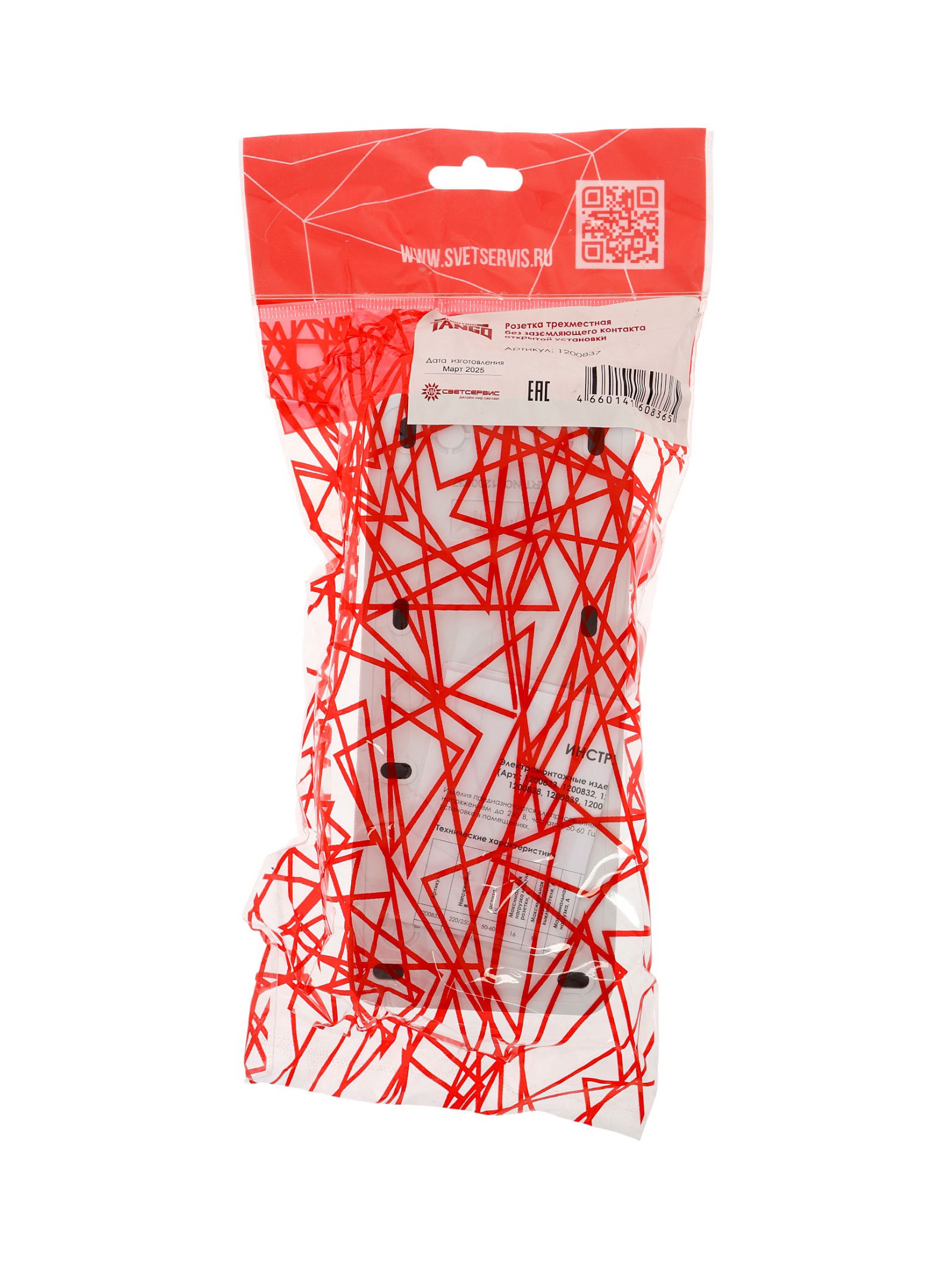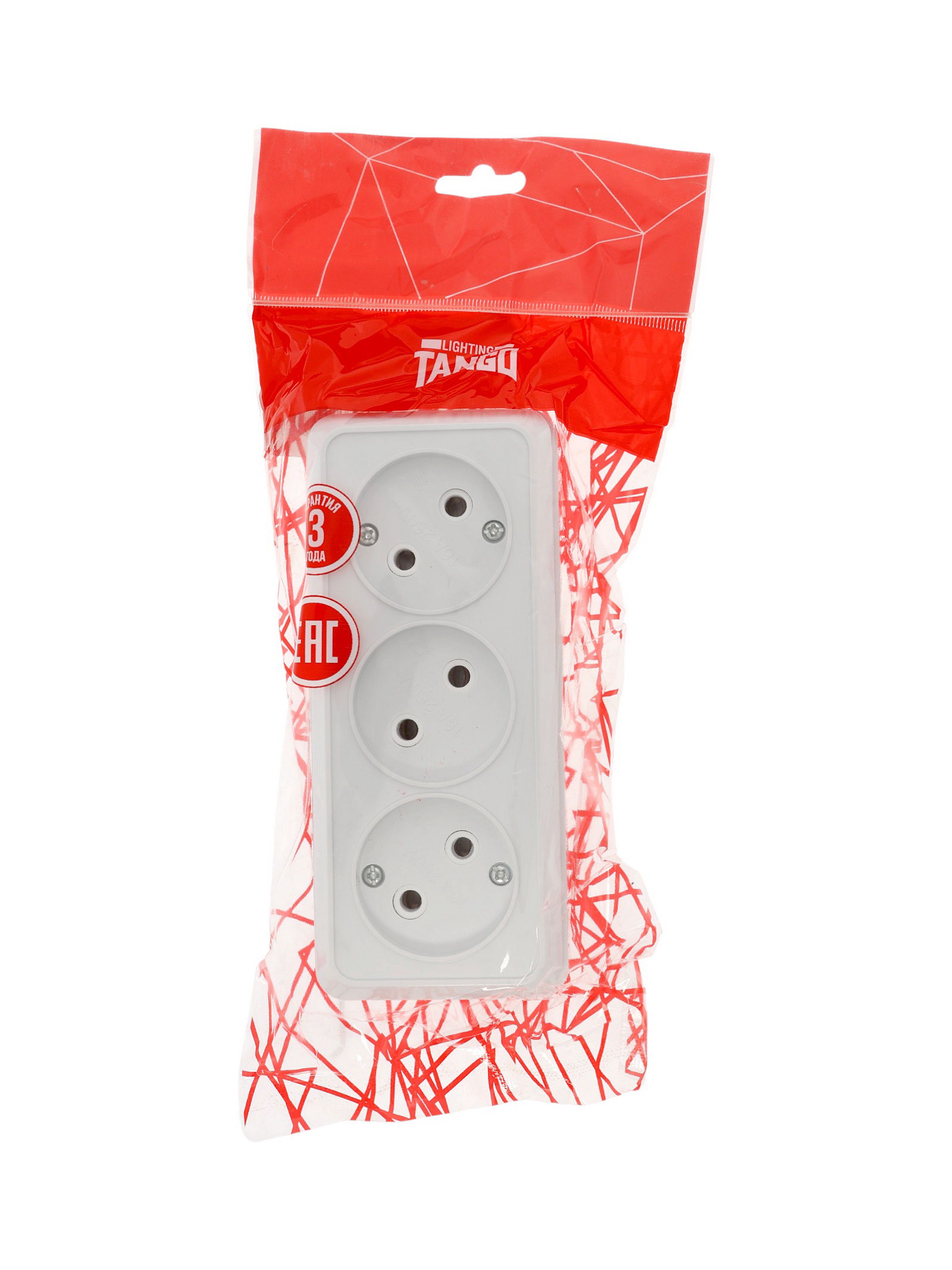 Розетка трёхместная 16 А, 250 В, IP20, без заземления, огнеупорный ABS-пластик, белая, Tango, Китай
