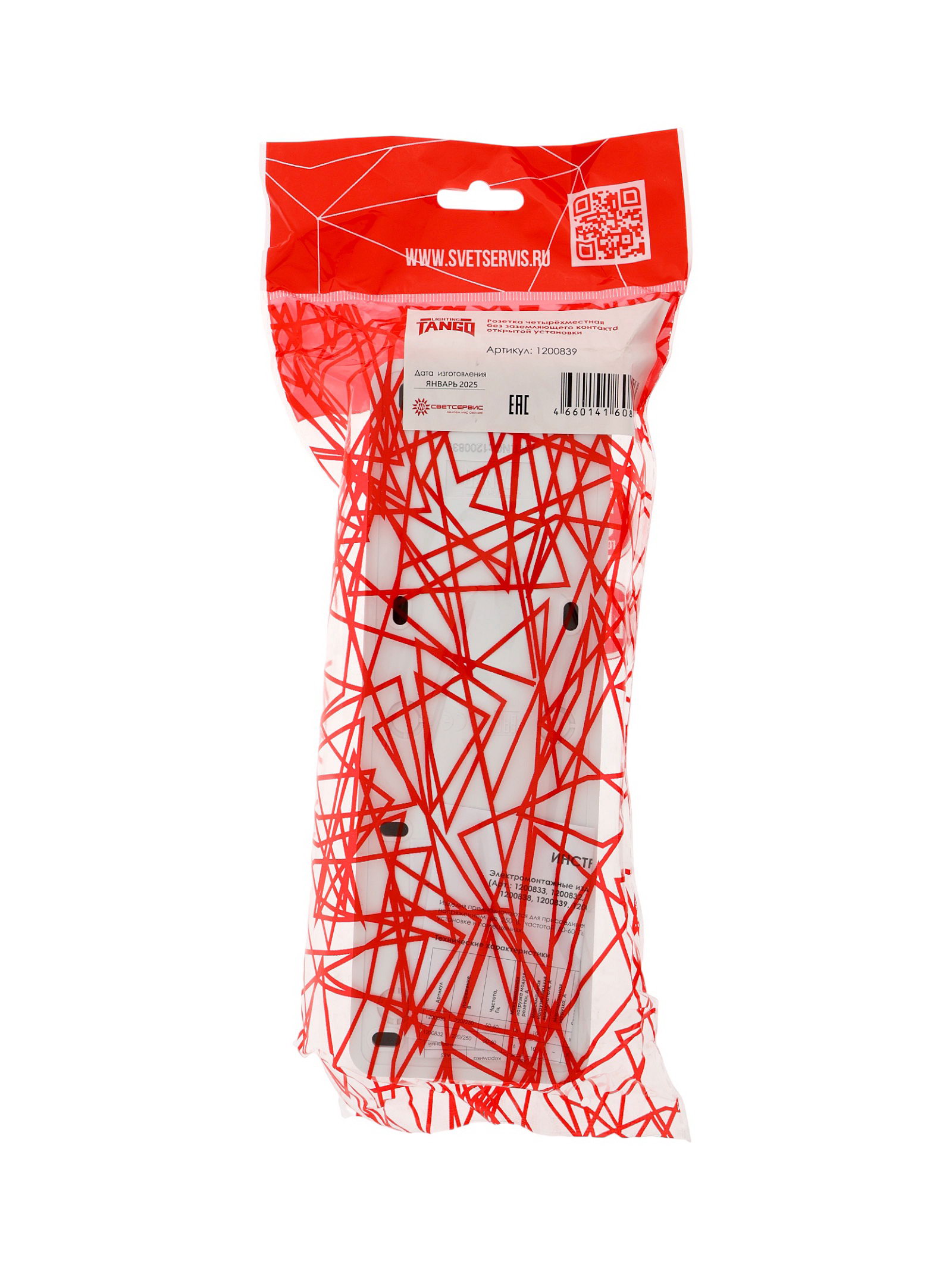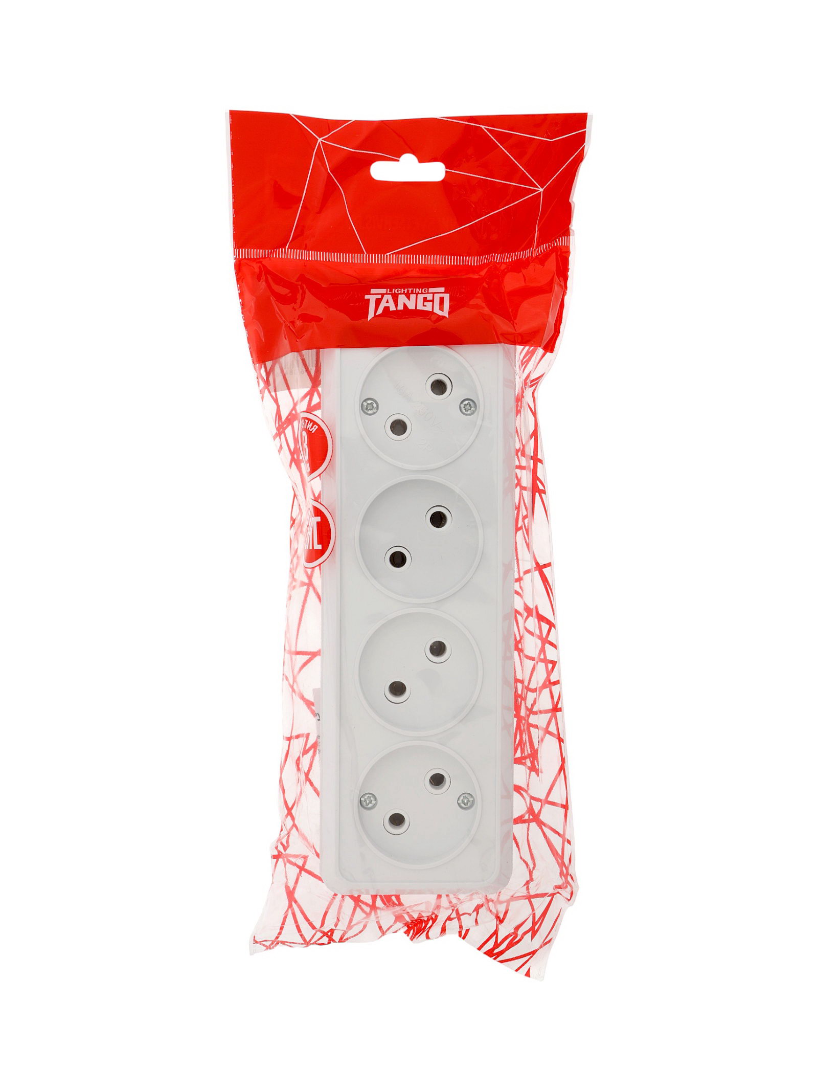 Розетка четырехместная 16 А, 250 В, IP20, без заземления, огнеупорный ABS-пластик, белая, Tango, Китай