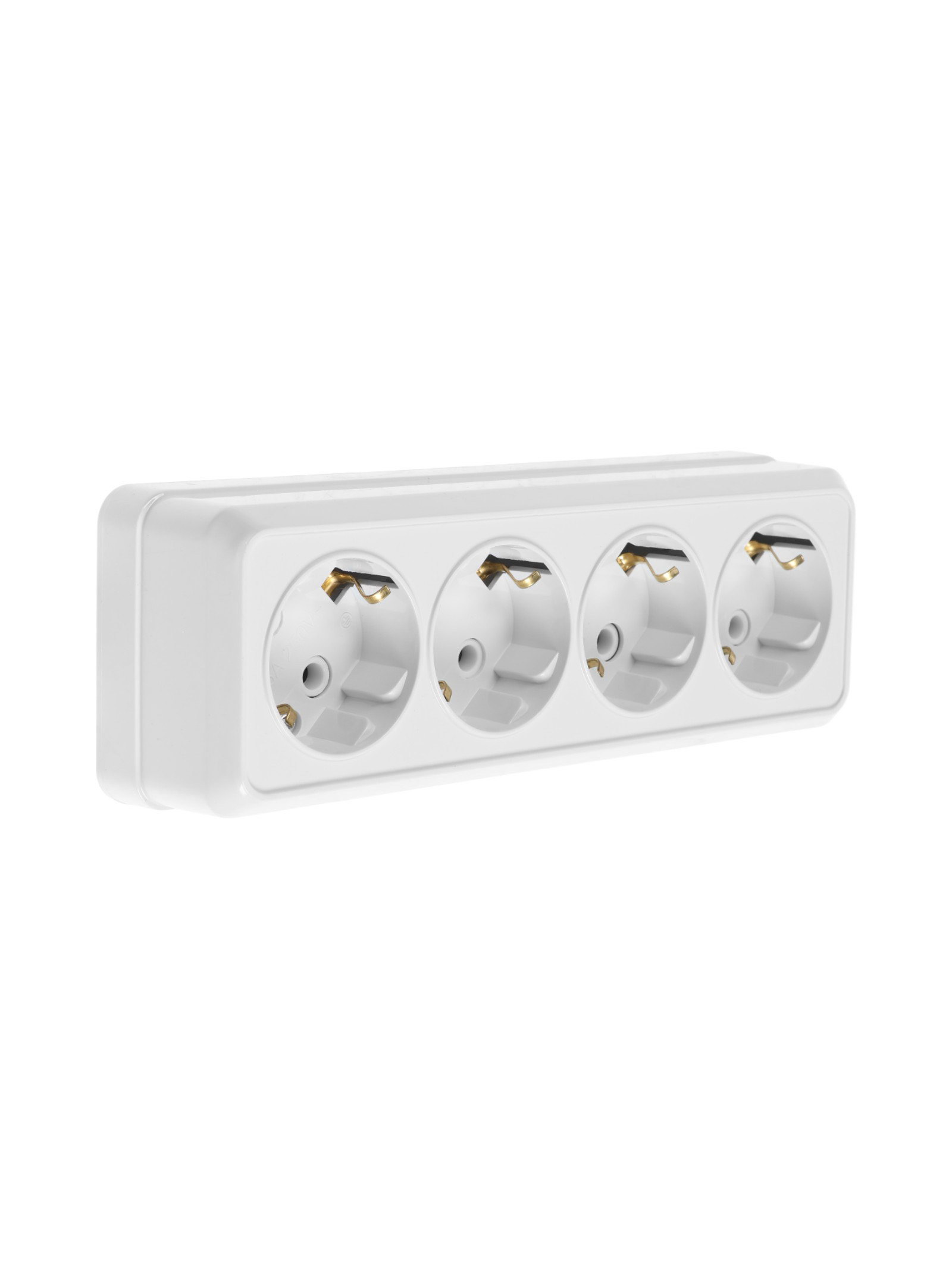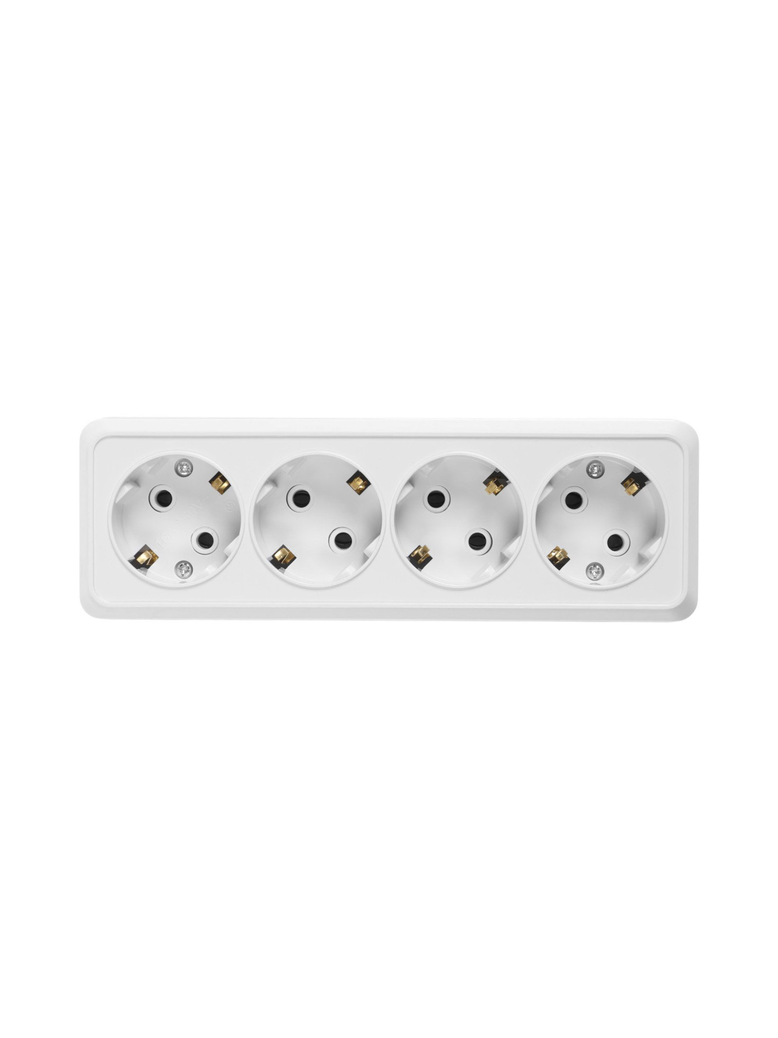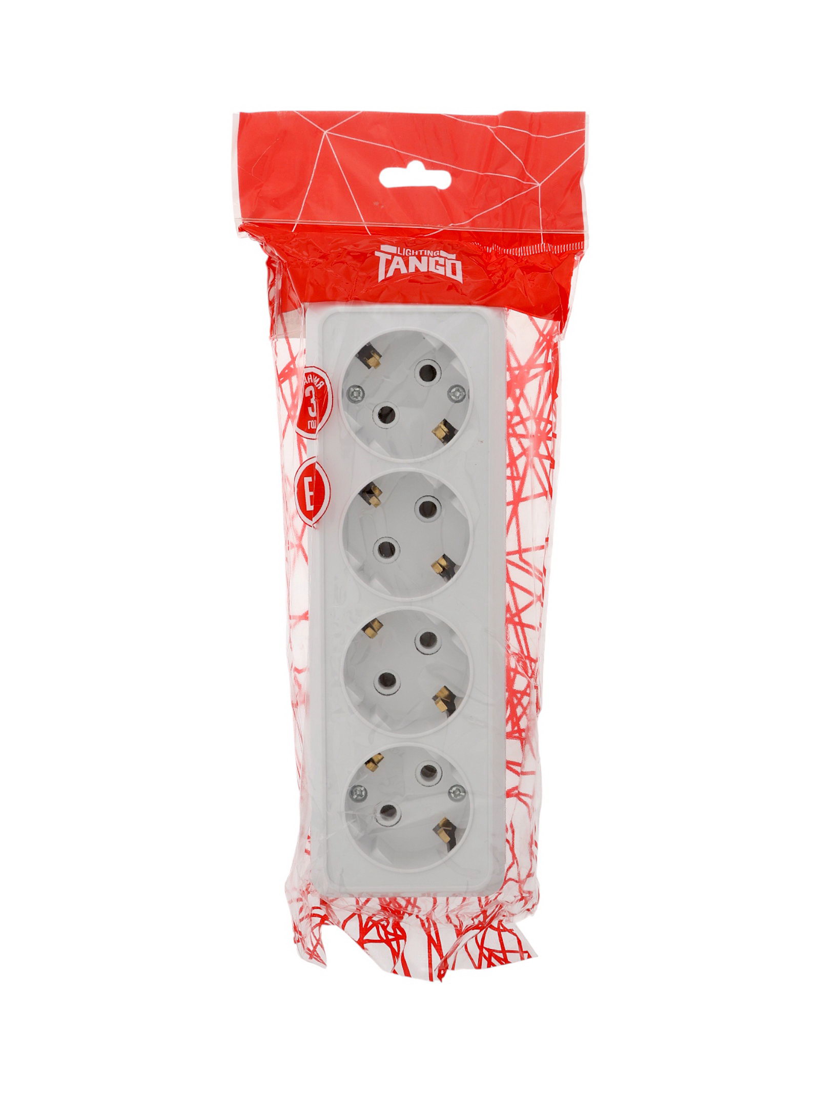 Розетка четырехместная 16 А, 250 В, IP20, с заземлением, огнеупорный ABS-пластик, белая, Tango, Китай