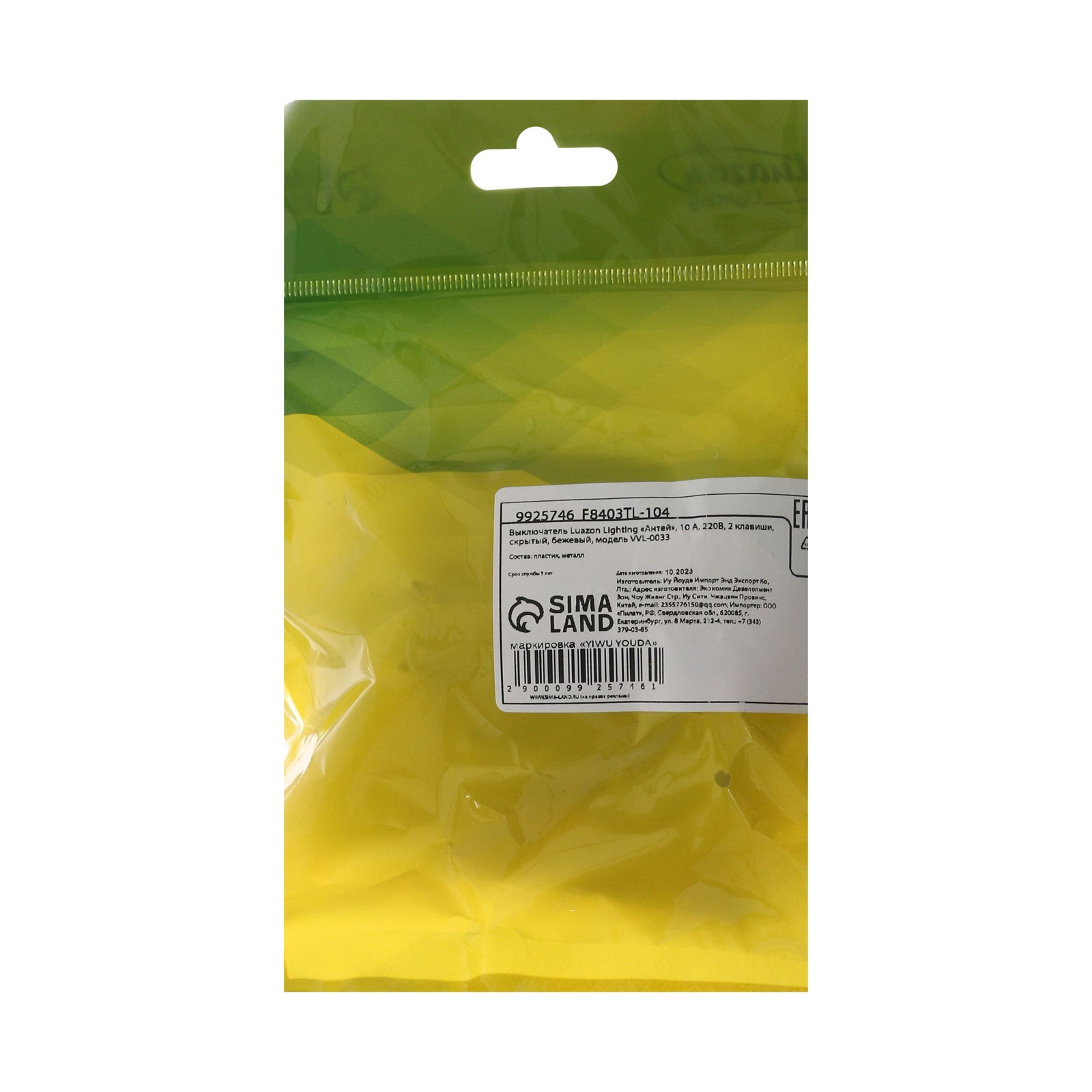 Выключатель "Антей", 10 А, 2 клавиши, скрытый монтаж, бежевый, 8.2x8.2x3.2 см., Luazon Lighting, Китай