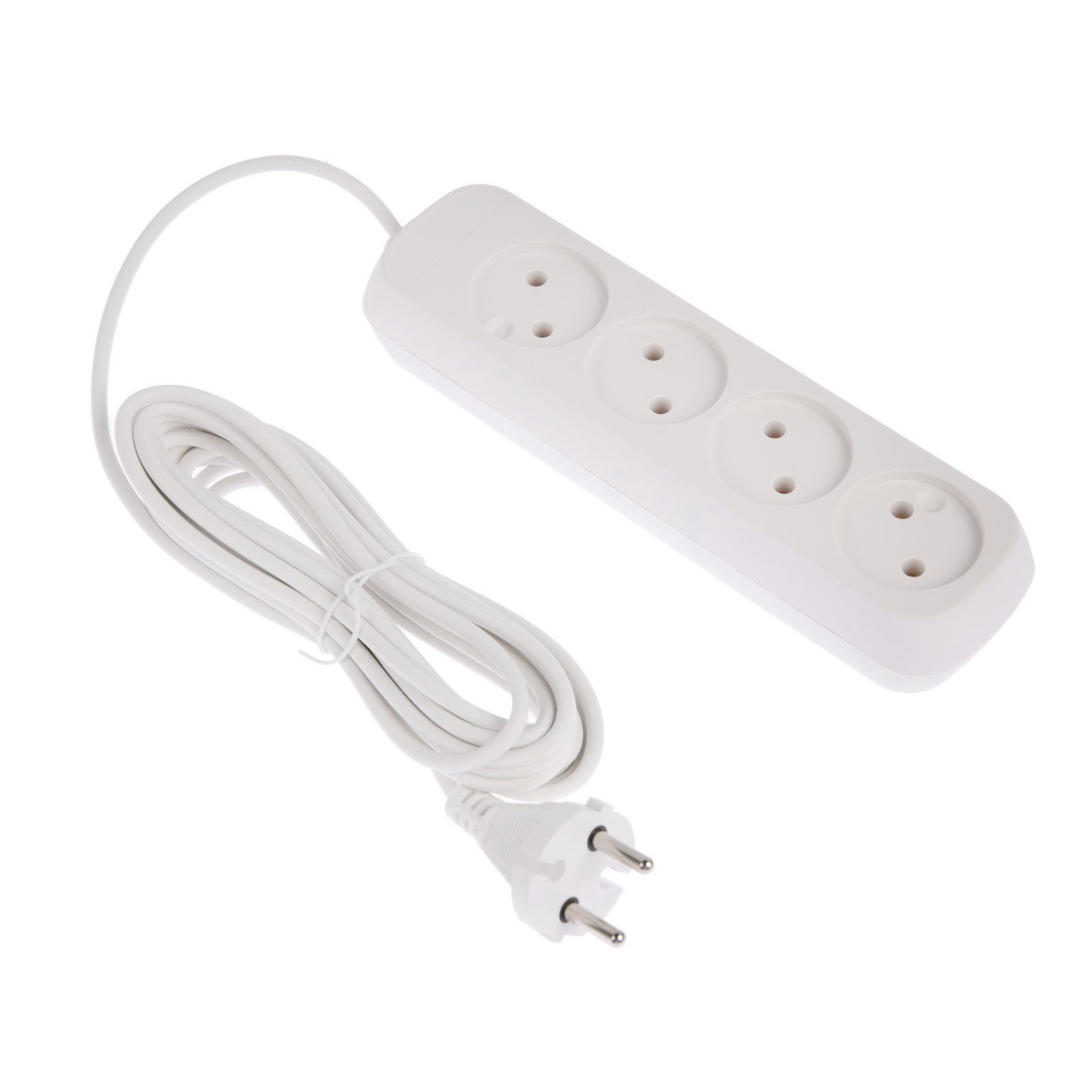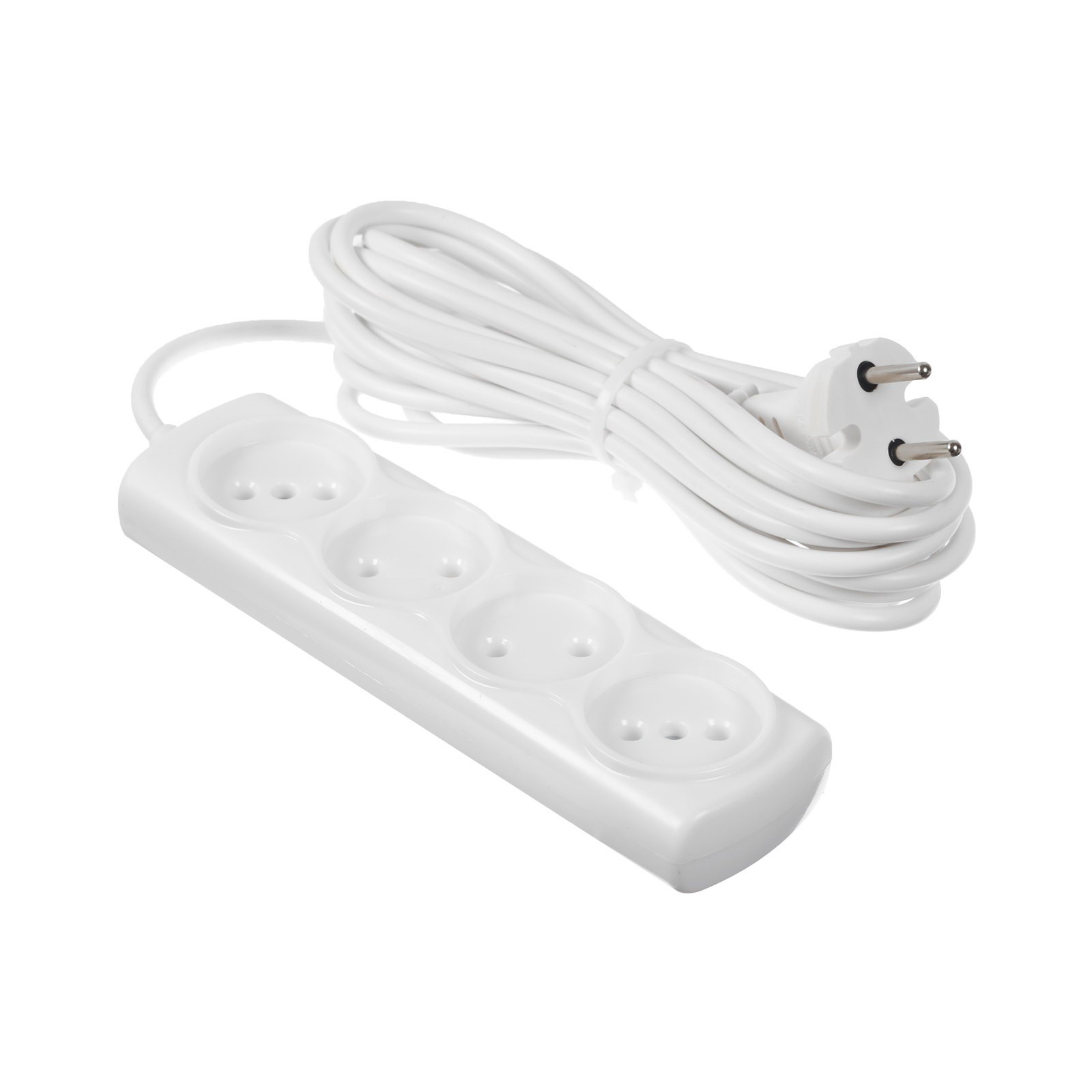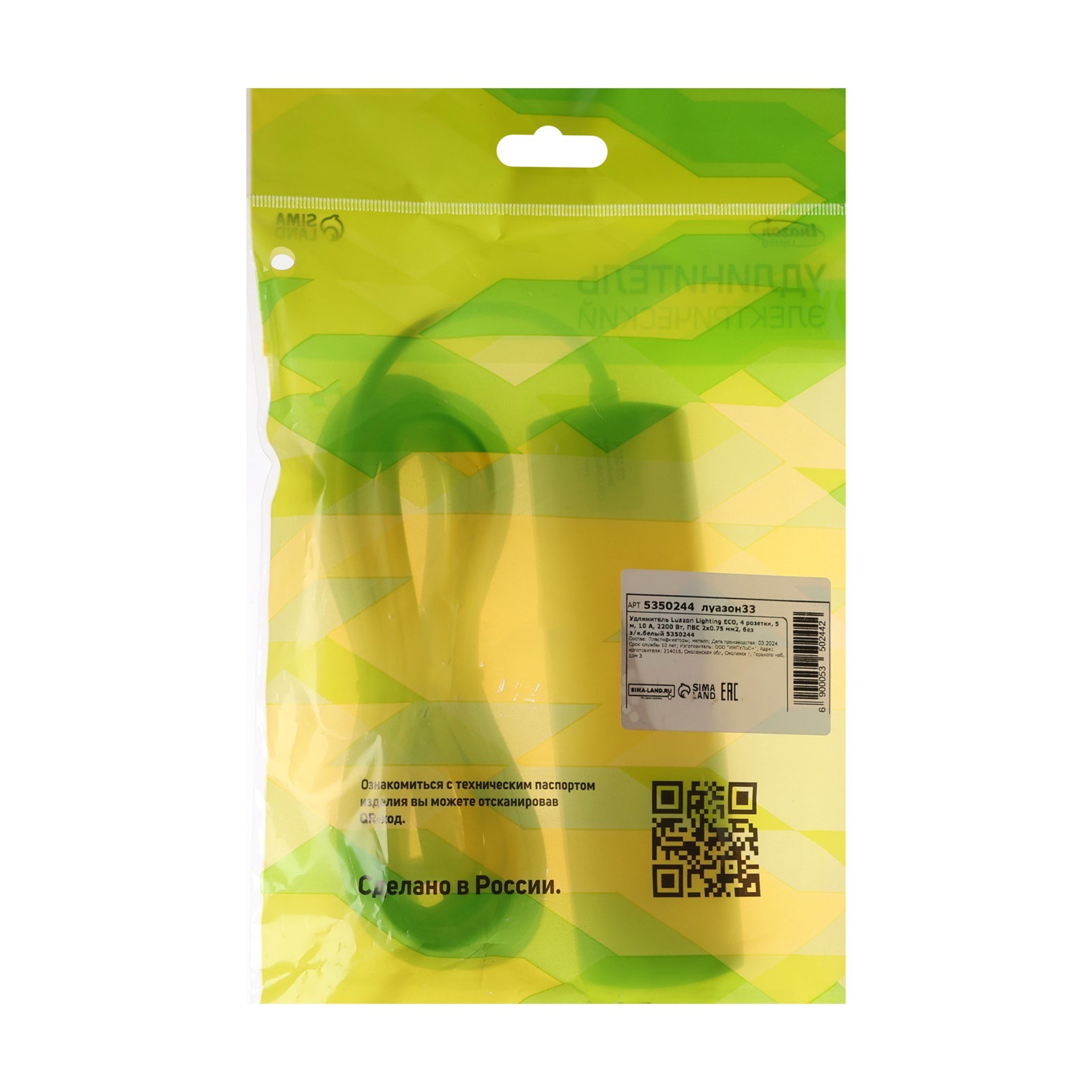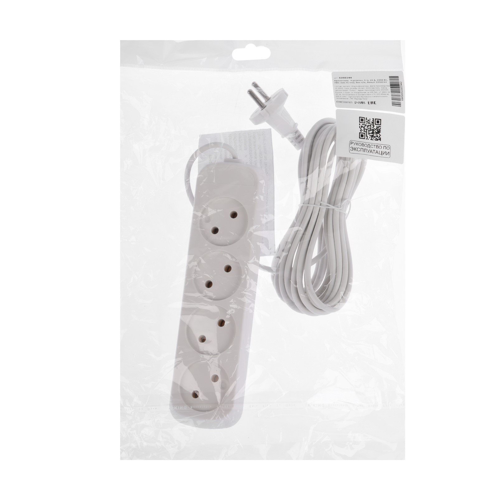 Удлинитель ECO, 4 розетки, 5 м, 10 А, 2200 Вт, ПВС 2х0.75 мм2, без з/к,белый, Luazon Lighting, Россия