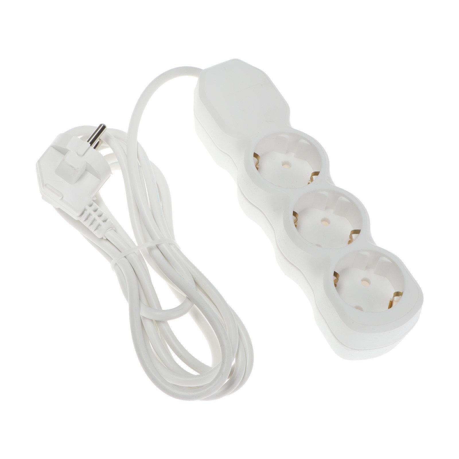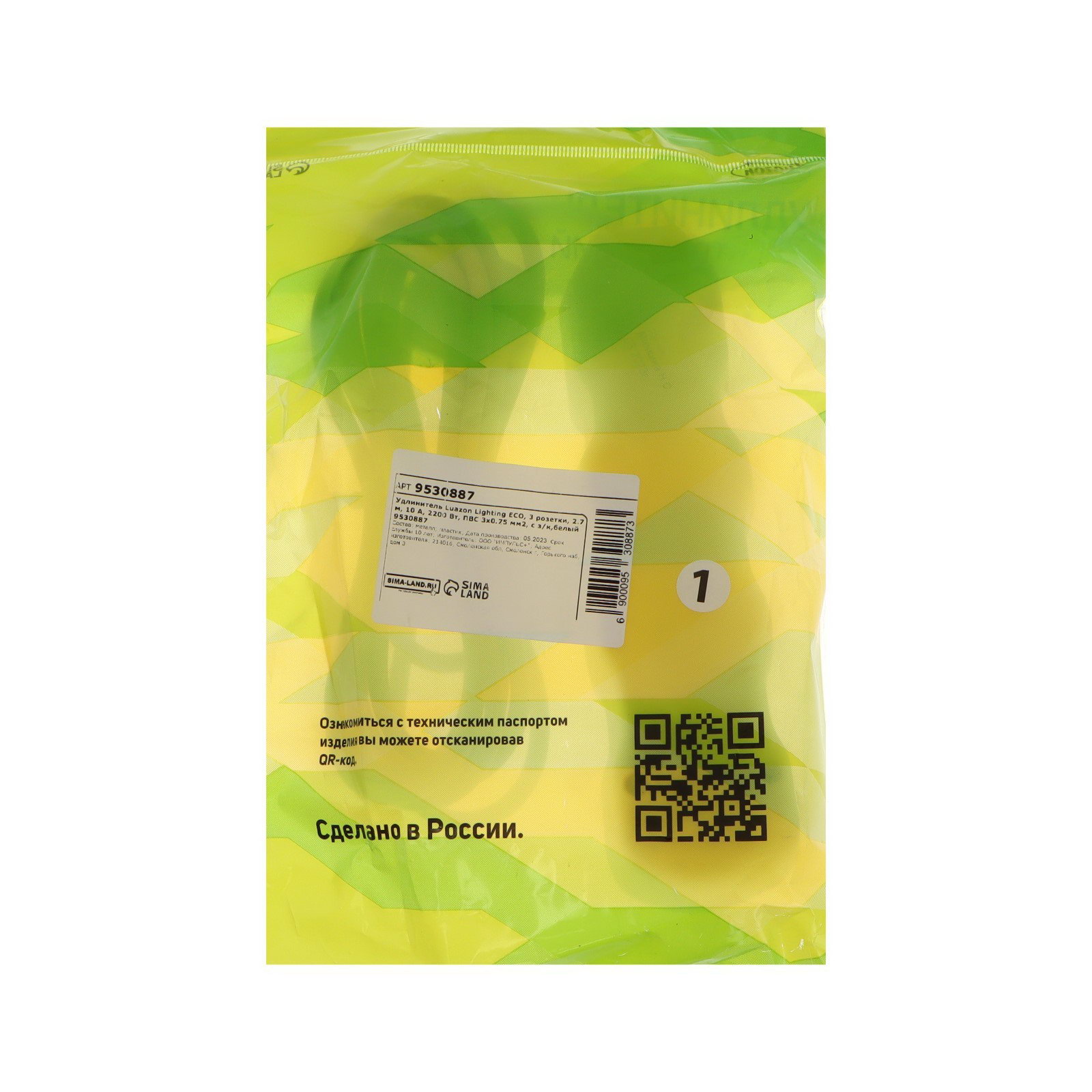 Удлинитель ECO, 3 розетки, 2.7 м, 10 А, 2200 Вт, ПВС 3x0.75 мм2, с заземлением, белый, Luazon Lighting, Россия