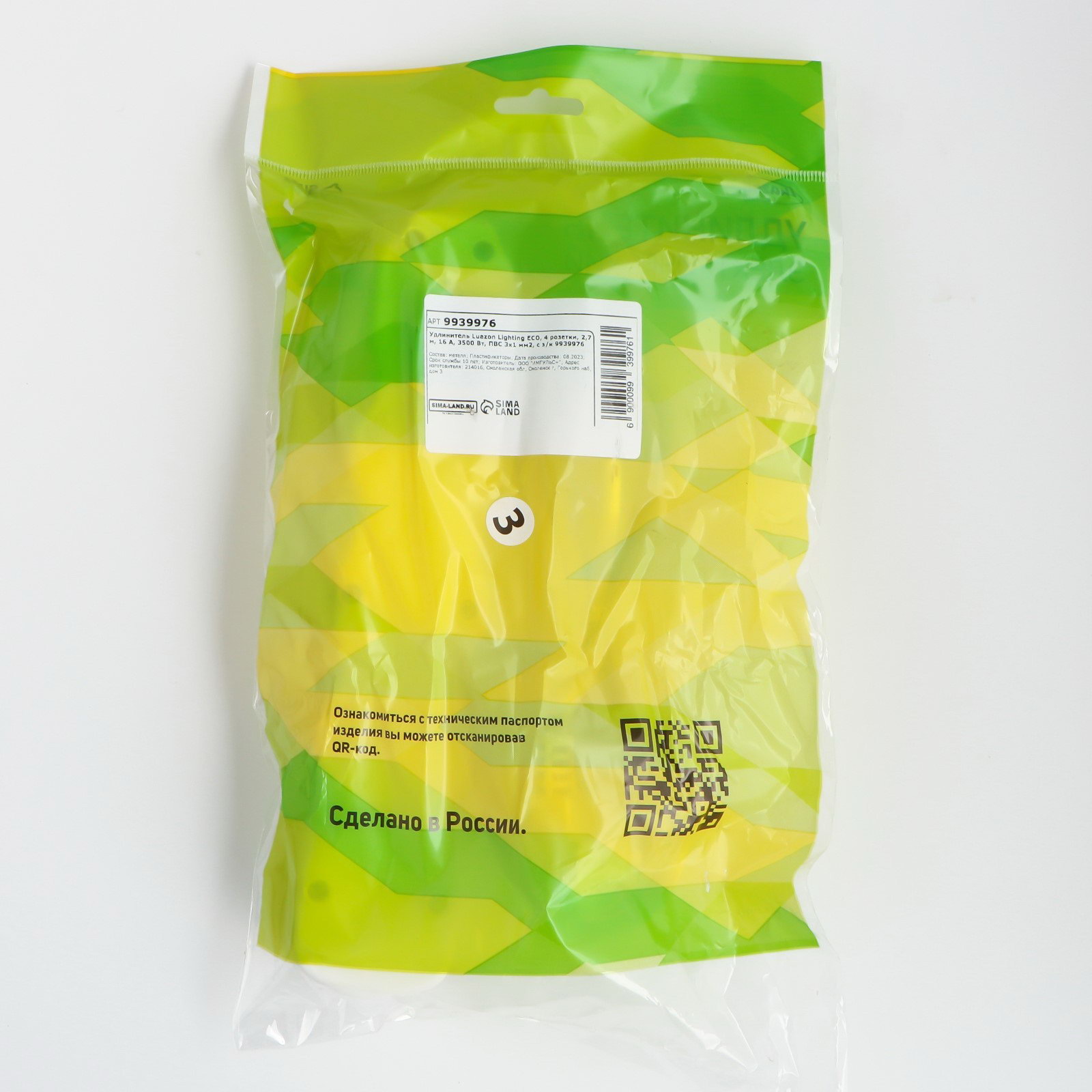 Удлинитель ECO, 4 розетки, 2.7 м, 16 А, 3500 Вт, ПВС 3х1 мм2, с з/к, Luazon Lighting, Россия