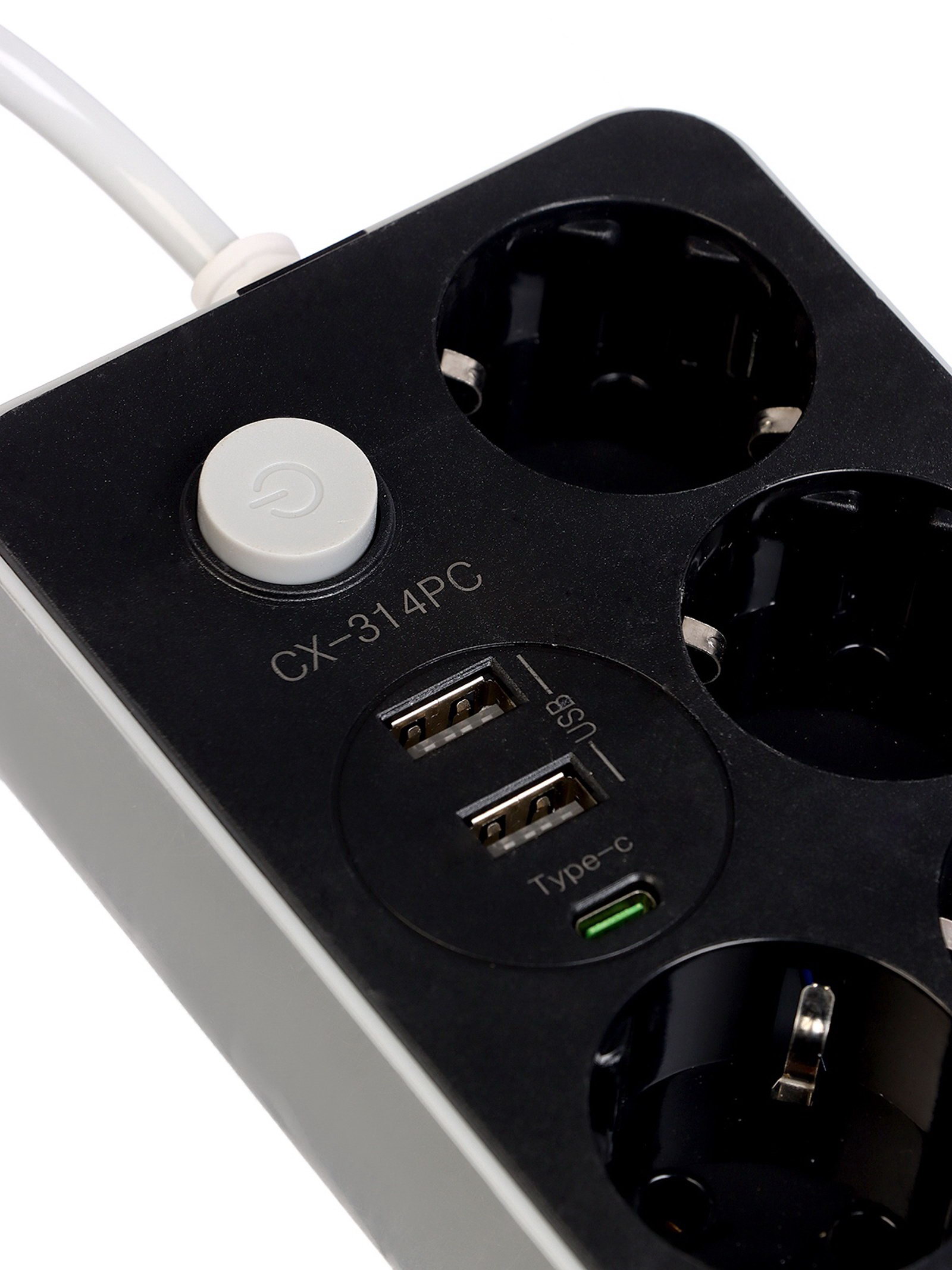 Удлинитель сетевой, 4 розетки, 2 м, 1300 Вт, 3x0.75 мм2, 2 USB-A, USB-C, 2.1 А, с заземлением, с выключателем, 10x14.5x3.5 см., Китай