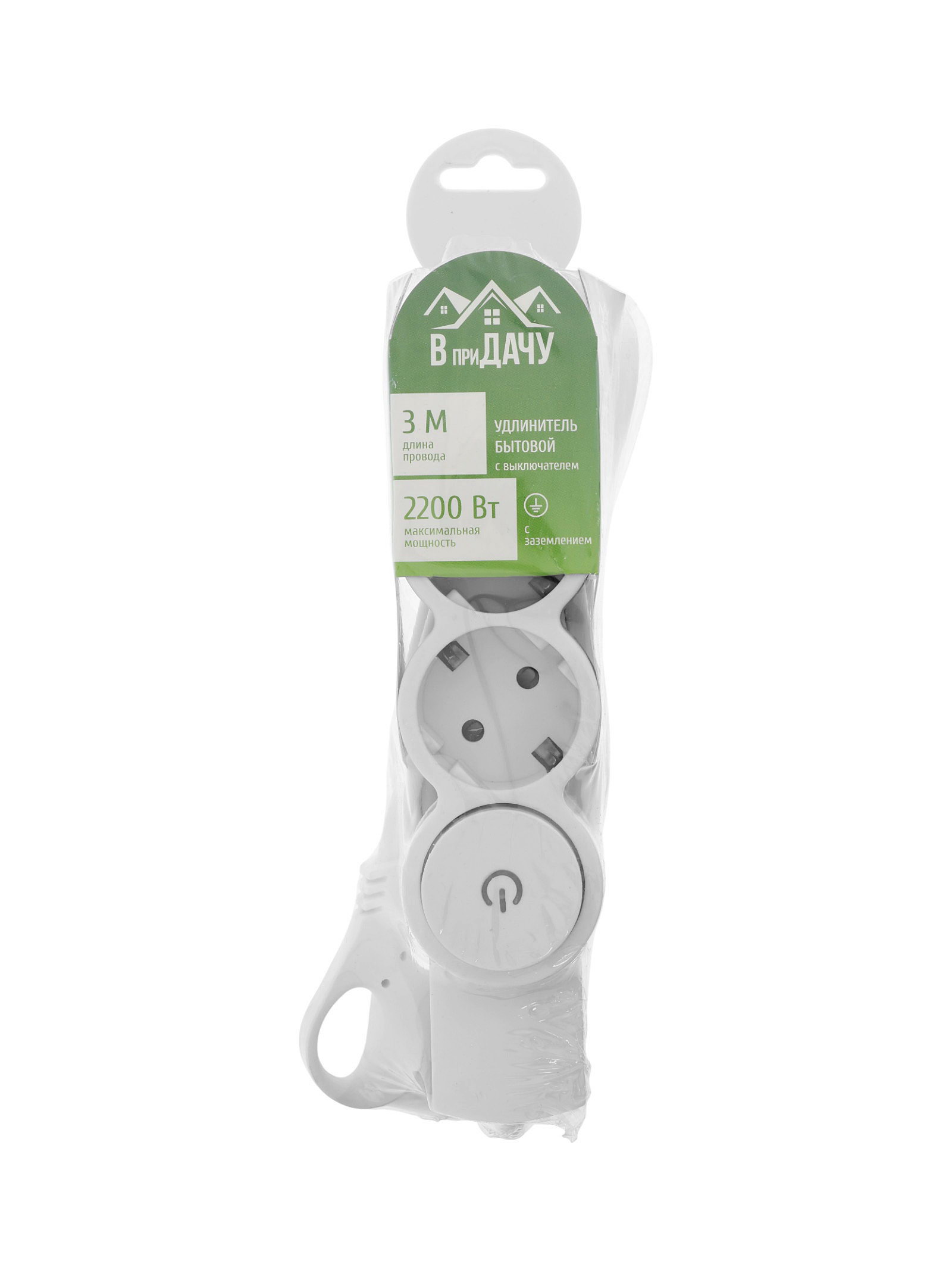 Удлинитель с выключателем, 3 розетки, 3 м, 10 А, 2200 Вт, ПВС 3x0.75 м?2, с заземлением, белый, ВприДачу, Китай
