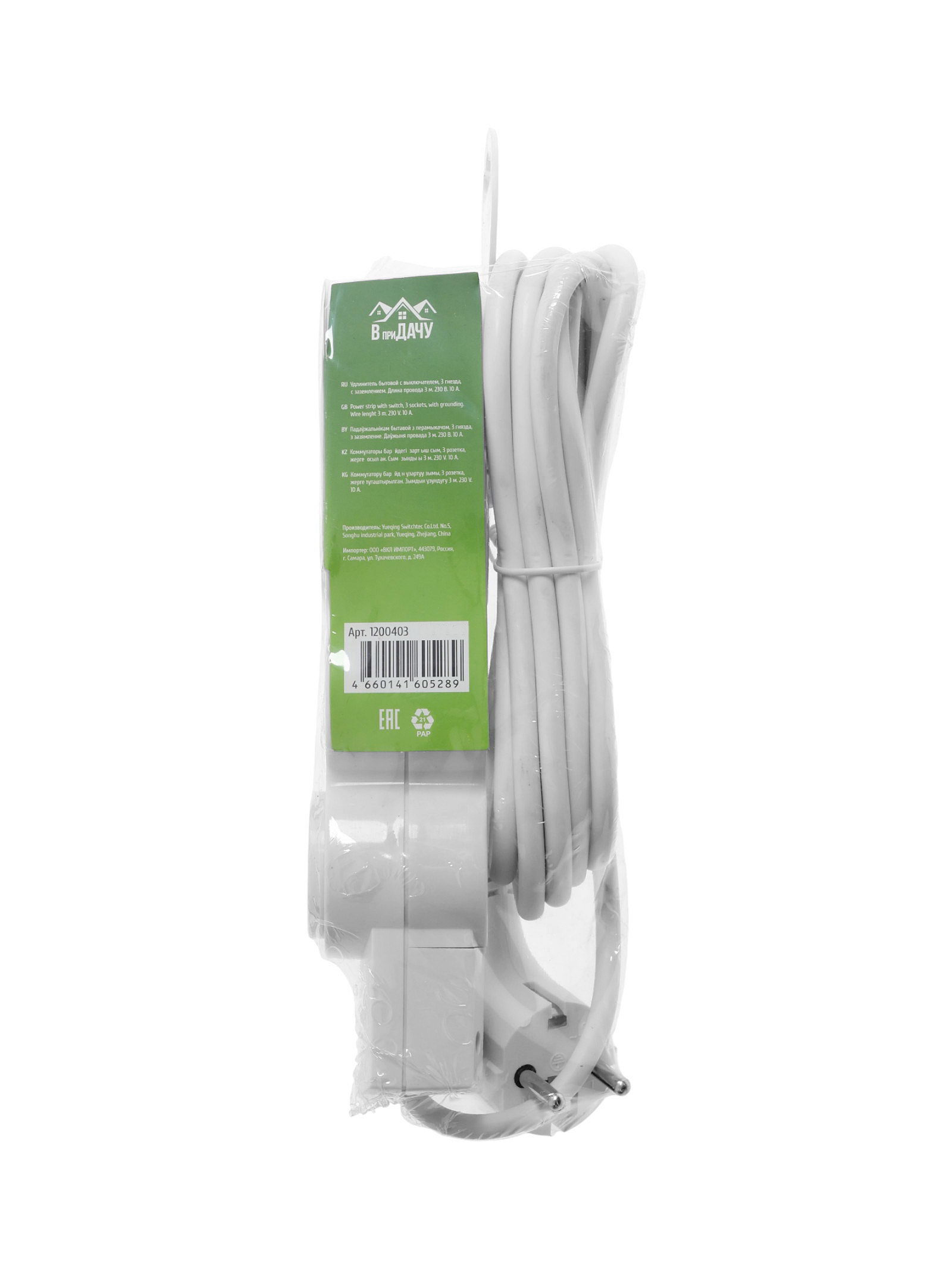 Размер упаковки: 9.5 x 6 x 26.5 см. Гарантийный срок, мес.: 12 tnved: 8544429000 Температурное ограничение: Нет Цвет: Белый Степень защиты: IP20 Длина, м: 3 Марка кабеля: ПВС Мощность, Вт: 2200 Номинальный ток, А: 10 Заземление: Да Количество розеток: 3 Выключатель: Да Сечение: 3 x 0.75 м?2 Удлинитель с выключателем и заземлением на три розетки длиной 3? м обеспечивает удобное и безопасное подключение бытовых приборов даже на расстоянии от стационарной розетки. Он рассчитан на нагрузку до 2200? Вт при номинальном токе 10? А, а прочный кабель марки ПВС с сечением 3x0,75? м?2 гарантирует стабильную подачу электричества для повседневных задач. | ||
