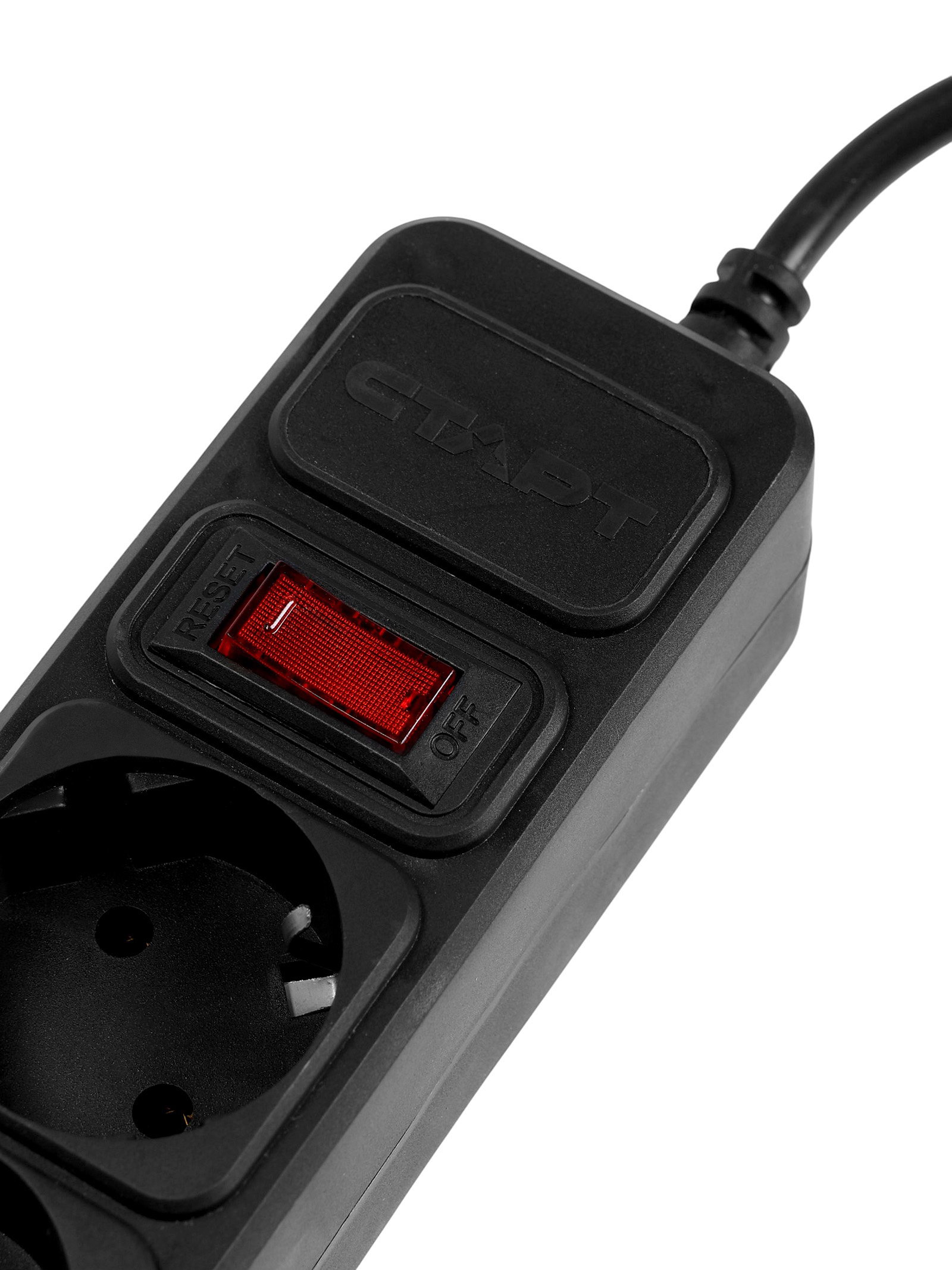 Сетевой фильтр 5 розеток, 3 м, 10 А, ПВС 3x0.75 мм2, с заземлением, с выключателем, IP20, белый, СТАРТ, Китай