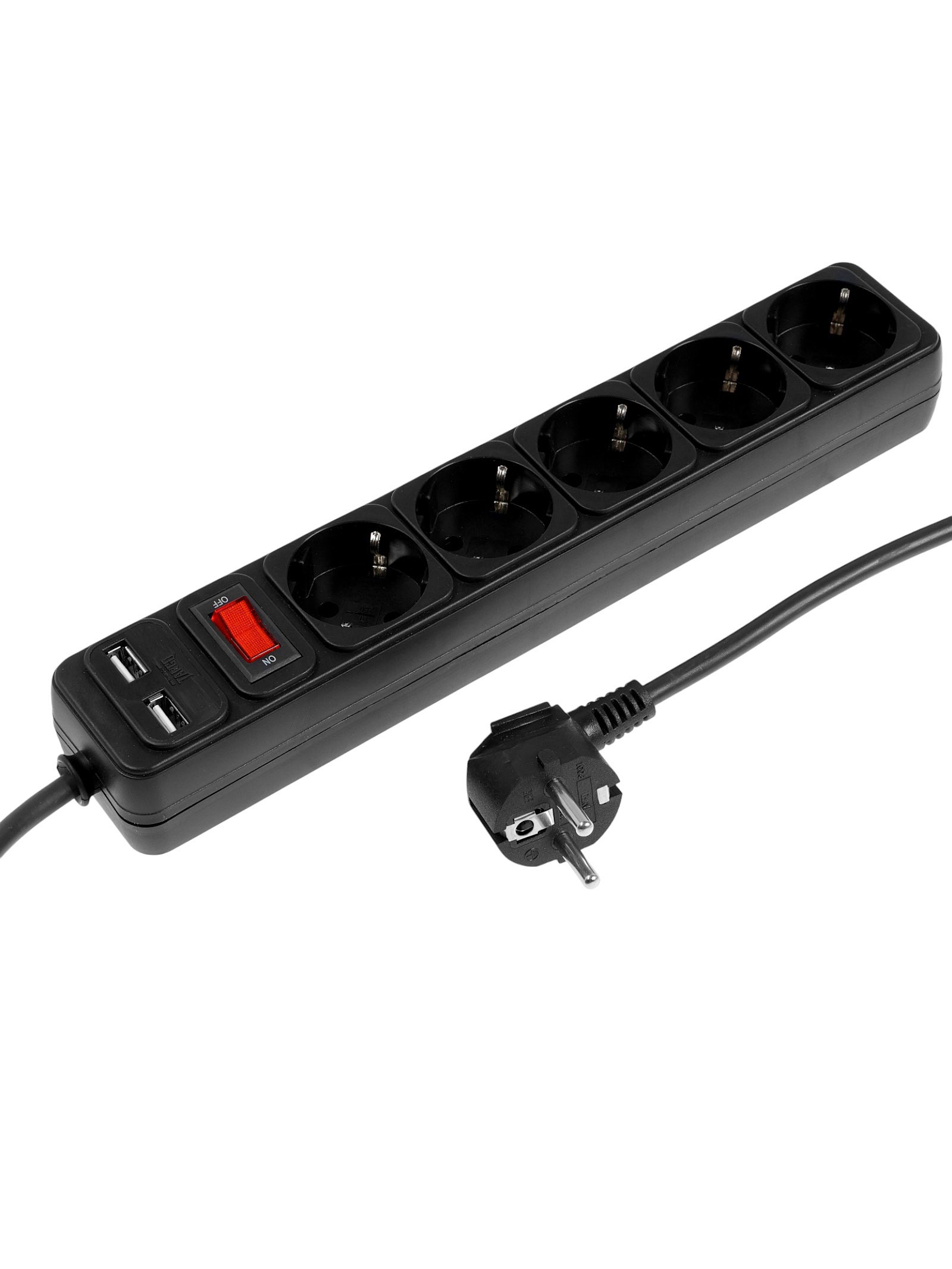 Сетевой фильтр TANGO, 5 розеток + 2 USB, 1.8 м, 10 А, 2200 Вт, с заземлением, чёрный, Китай