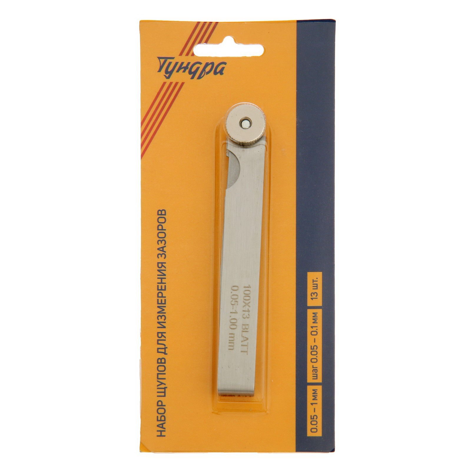 Набор щупов для измерения зазоров 0.05 - 1 мм, шаг 0.05 - 0.1 мм, 13 шт., ТУНДРА, Китай