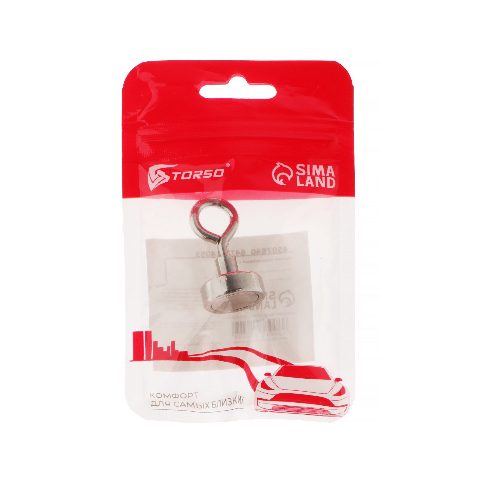 Магнит неодимовый с петлёй для авто, d=20 мм, сцепление 9 кг, 2x2x3.6 см., TORSO, Китай