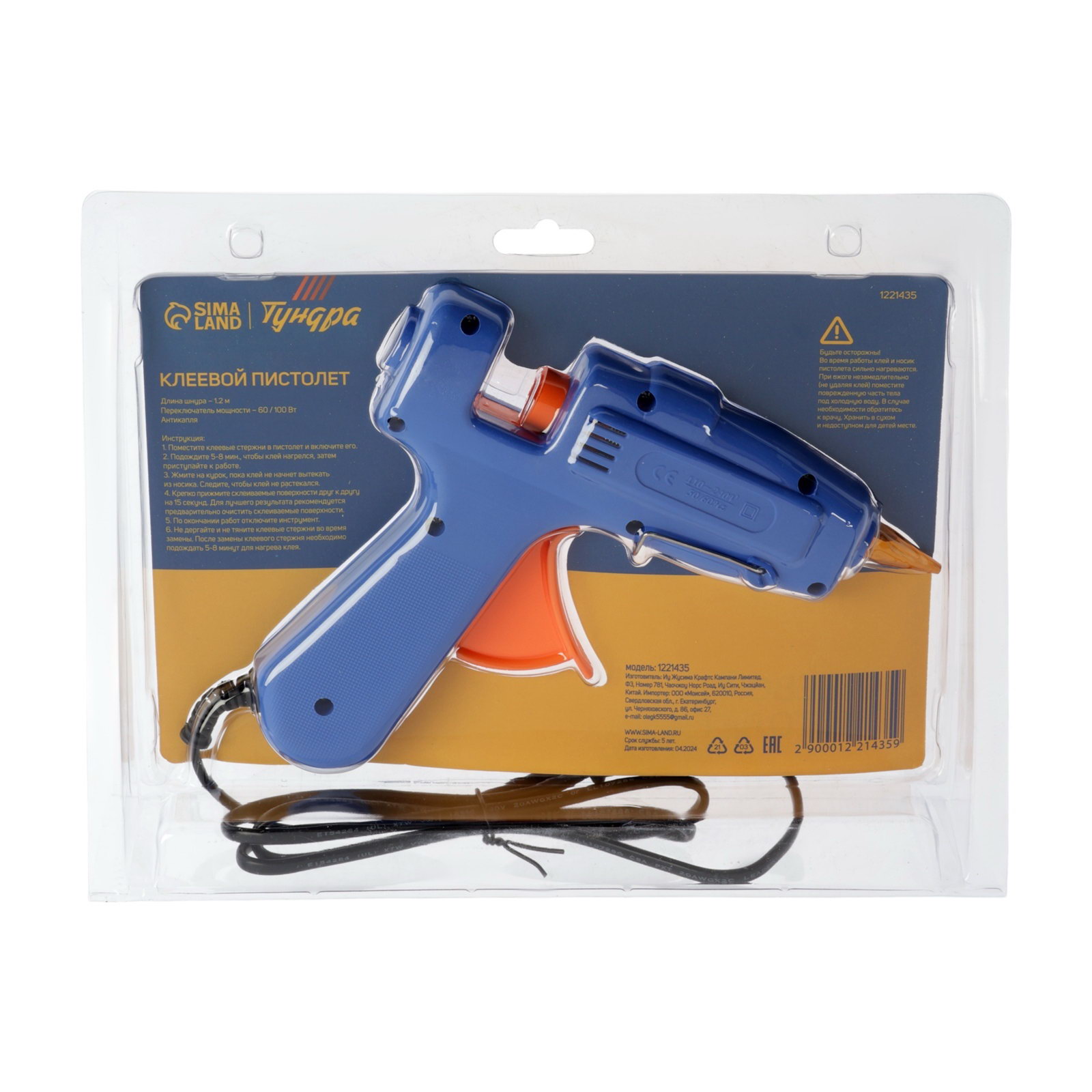 Клеевой пистолет переключатель мощности 60/100 Вт, 220 В, антикапля, 11 мм, 110 см., ТУНДРА, Китай