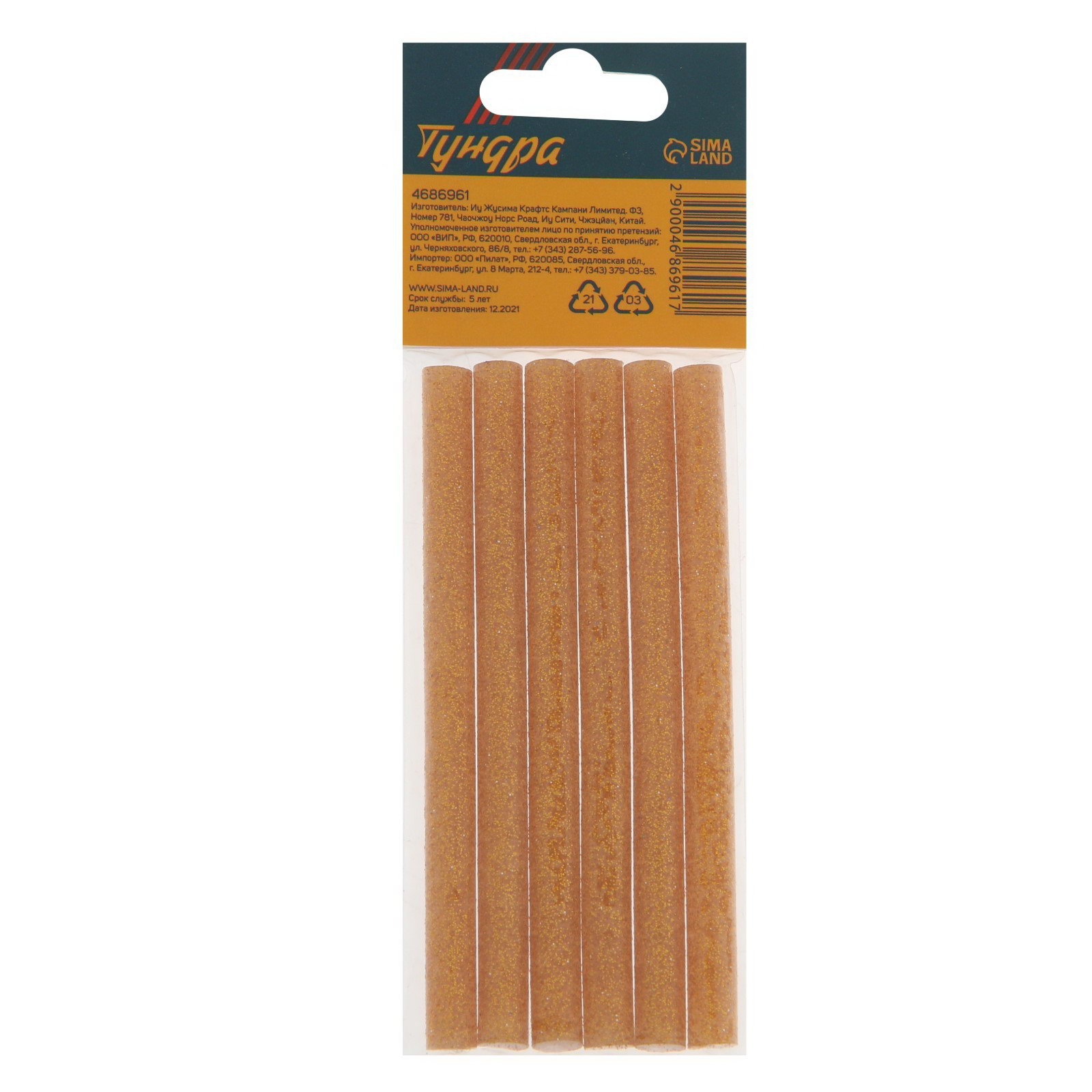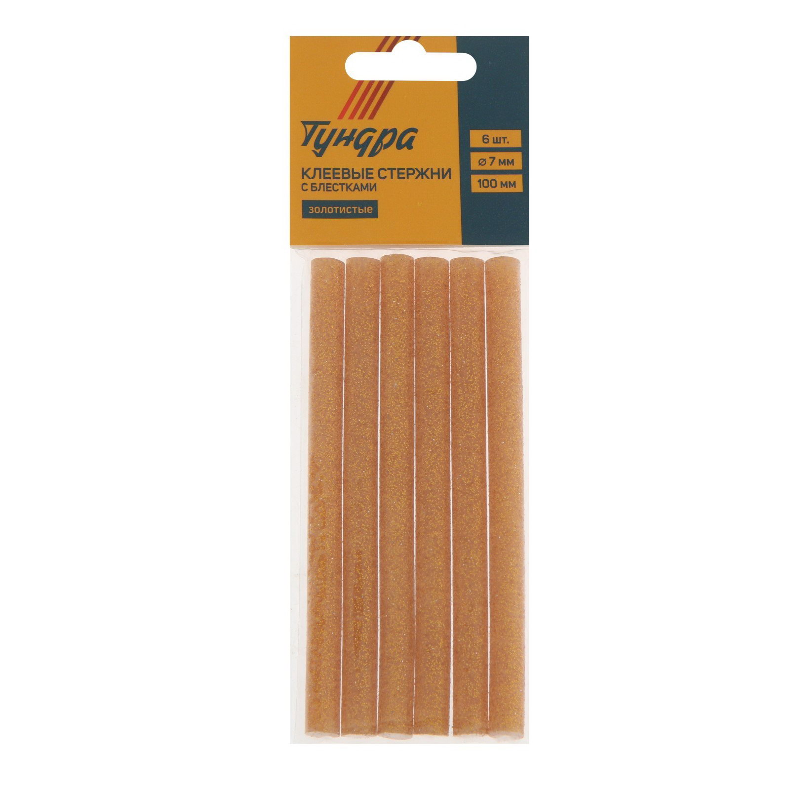 Клеевые стержни 7x100 мм, золотистые с блестками, 6 шт., 70 см., ТУНДРА, Китай