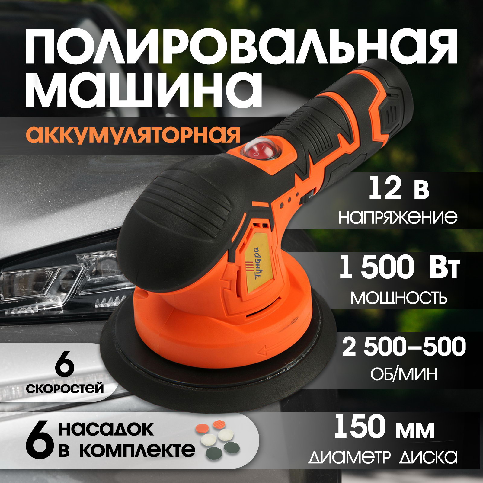 Аккумуляторная полировальная машина 1500 Вт, 12 В, 2500-5000 об/мин, 150 мм, 15 см., ТУНДРА, Китай