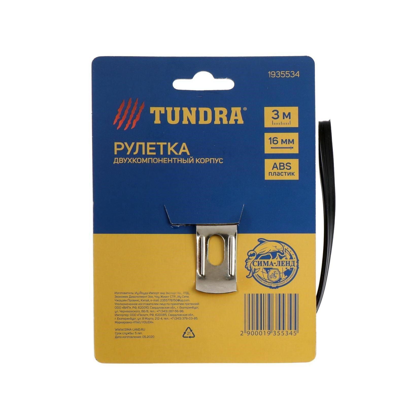 Рулетка двухкомпонентный корпус, 3 м x 16 мм, ТУНДРА, Китай