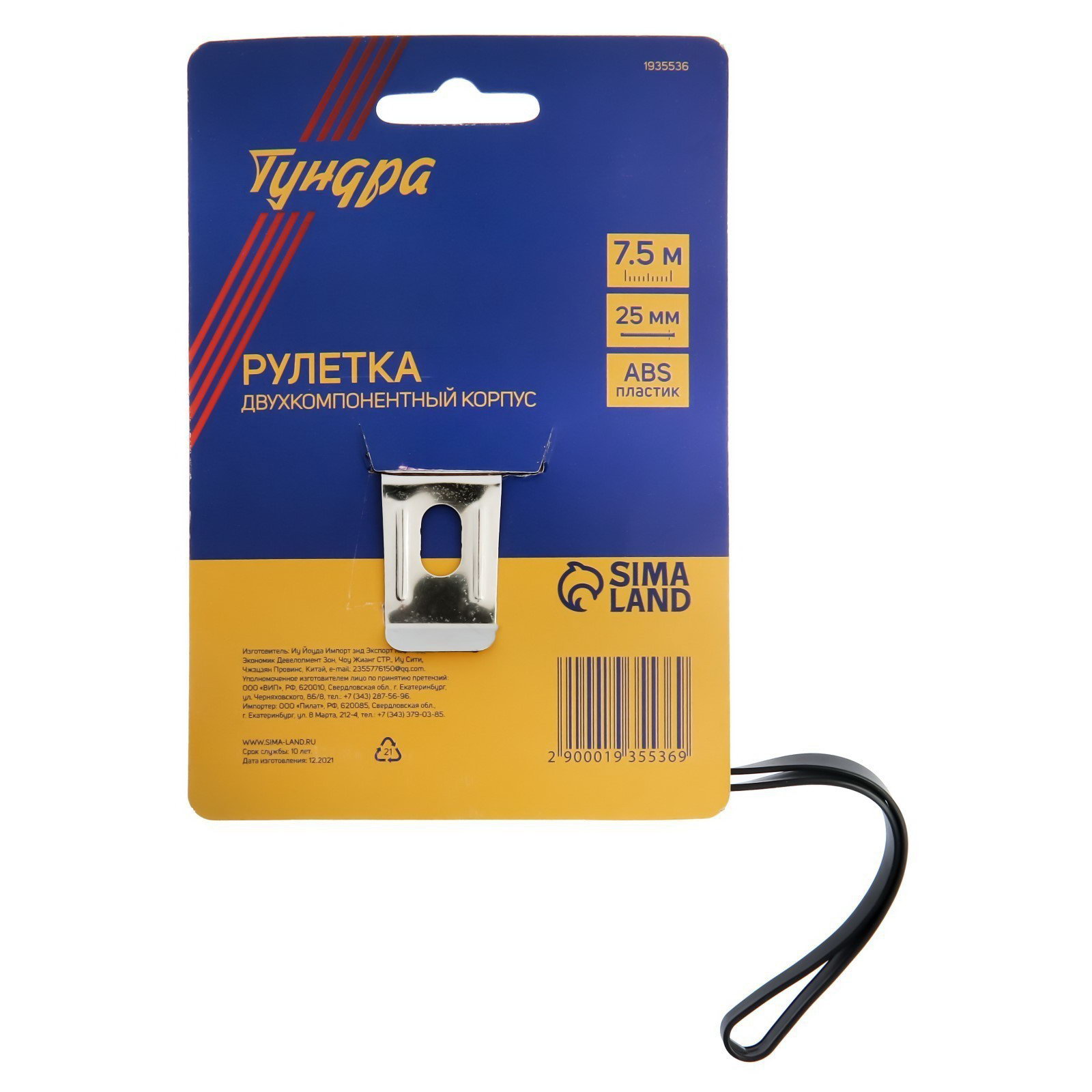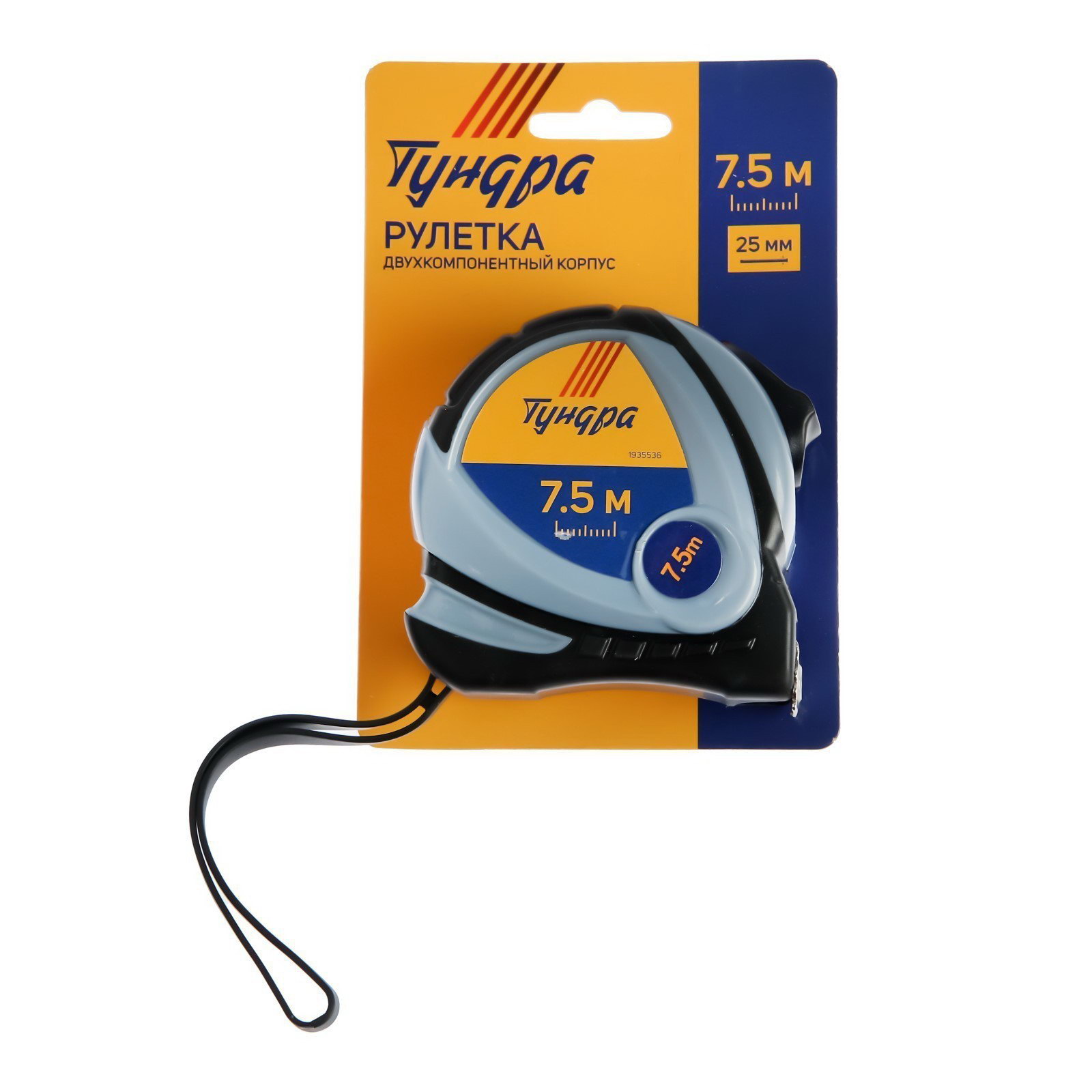 Рулетка двухкомпонентный корпус, 7.5 м x 25 мм, ТУНДРА, Китай