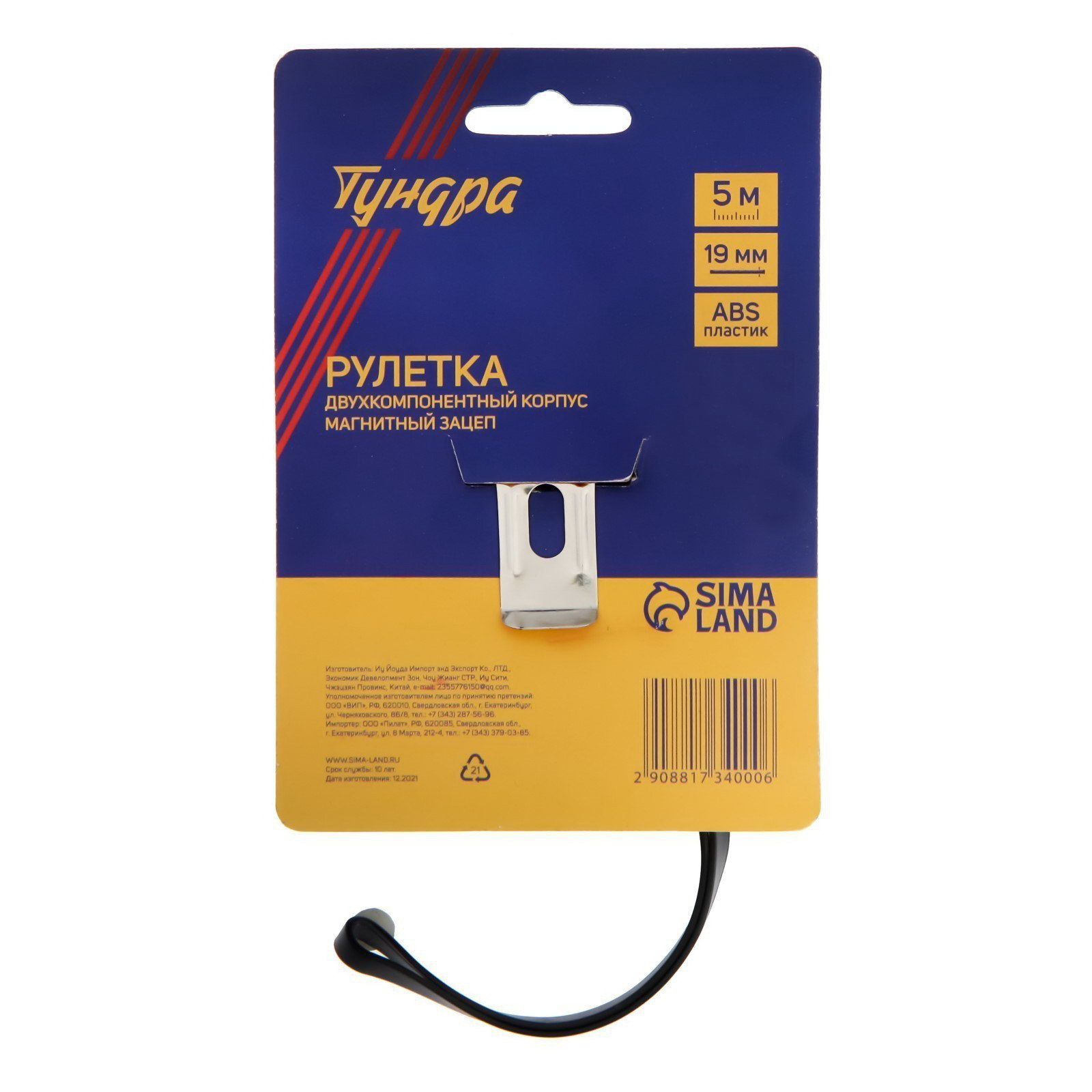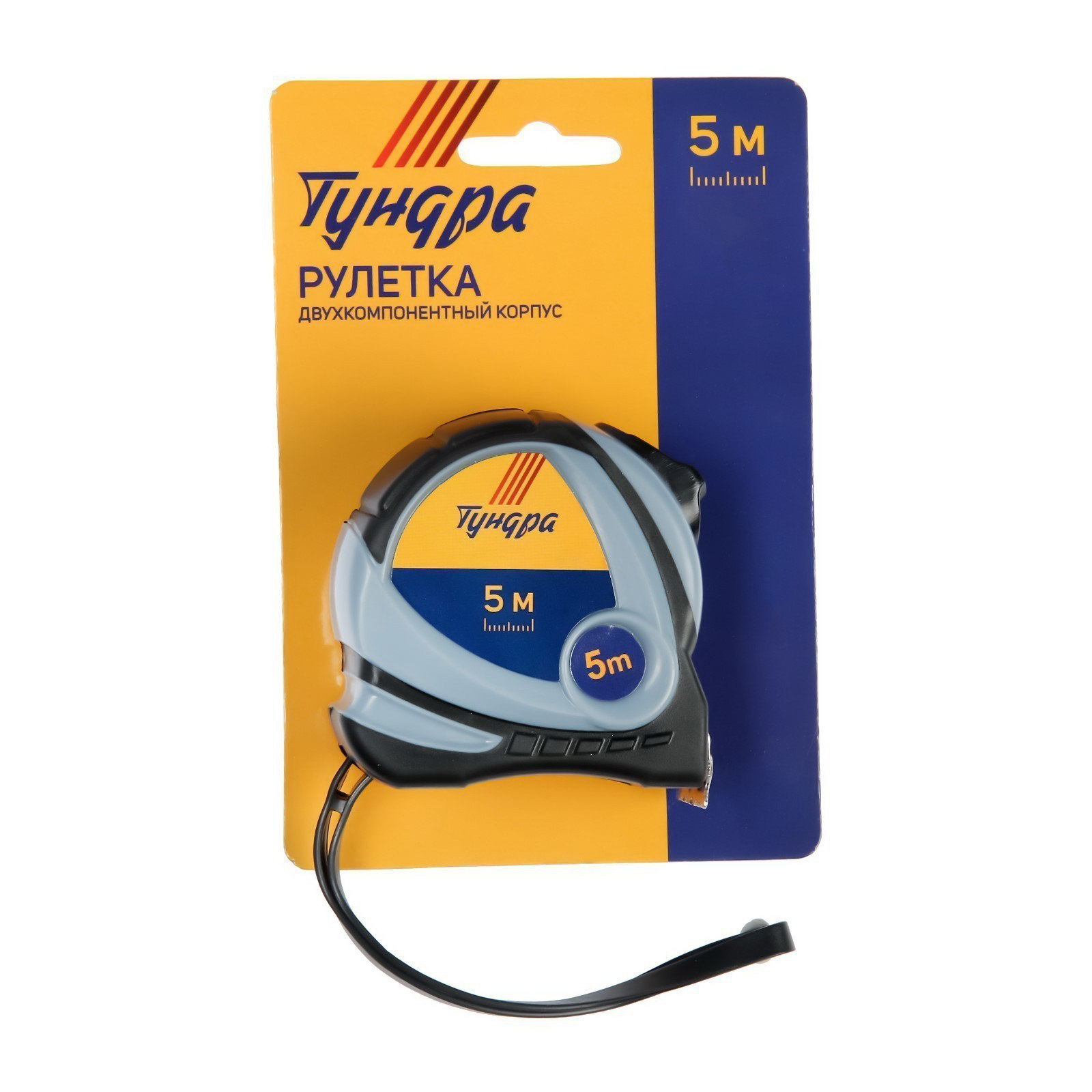 Рулетка двухкомпонентный корпус, 5 м x 19 мм, ТУНДРА, Китай