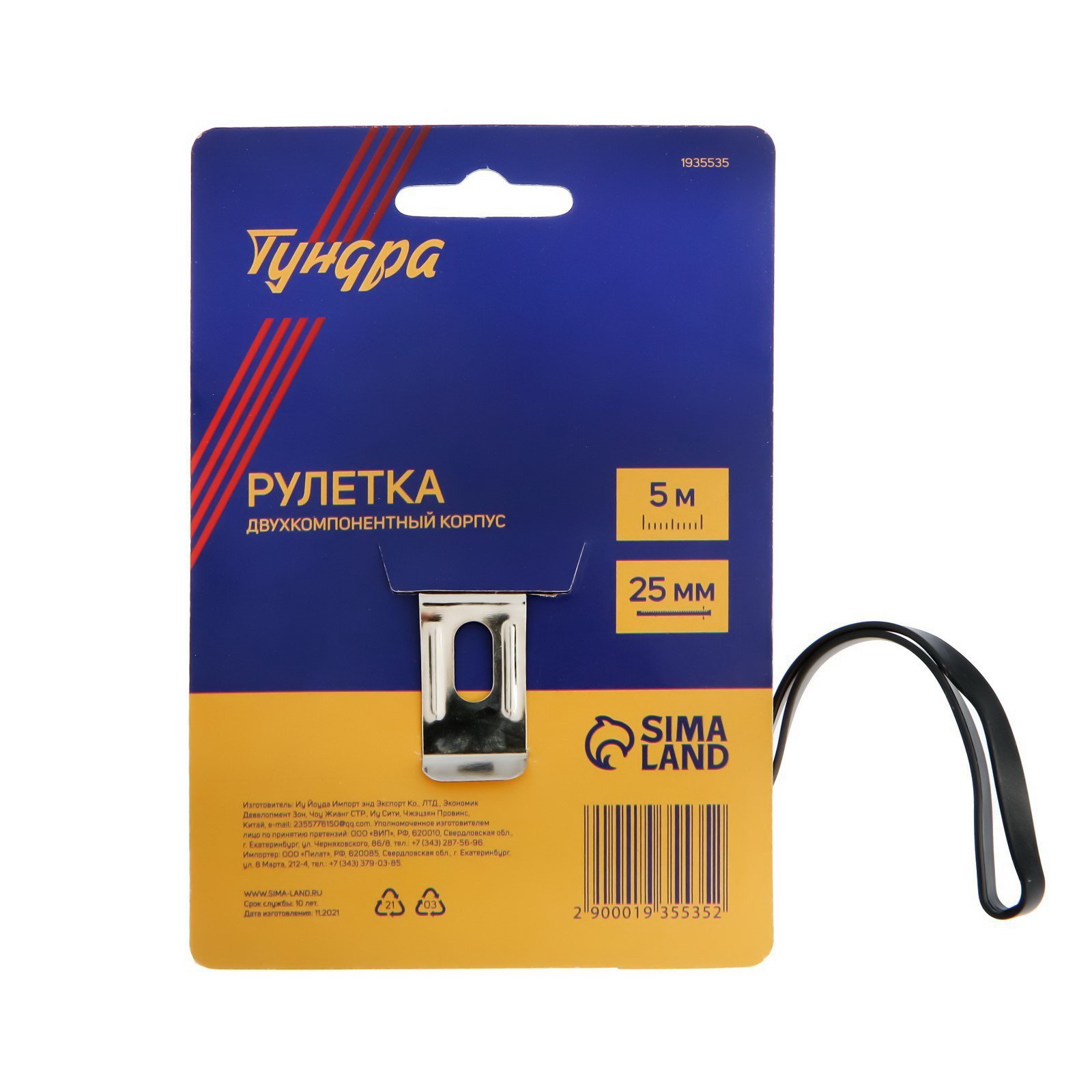 Рулетка двухкомпонентный корпус, 5 м x 25 мм, ТУНДРА, Китай