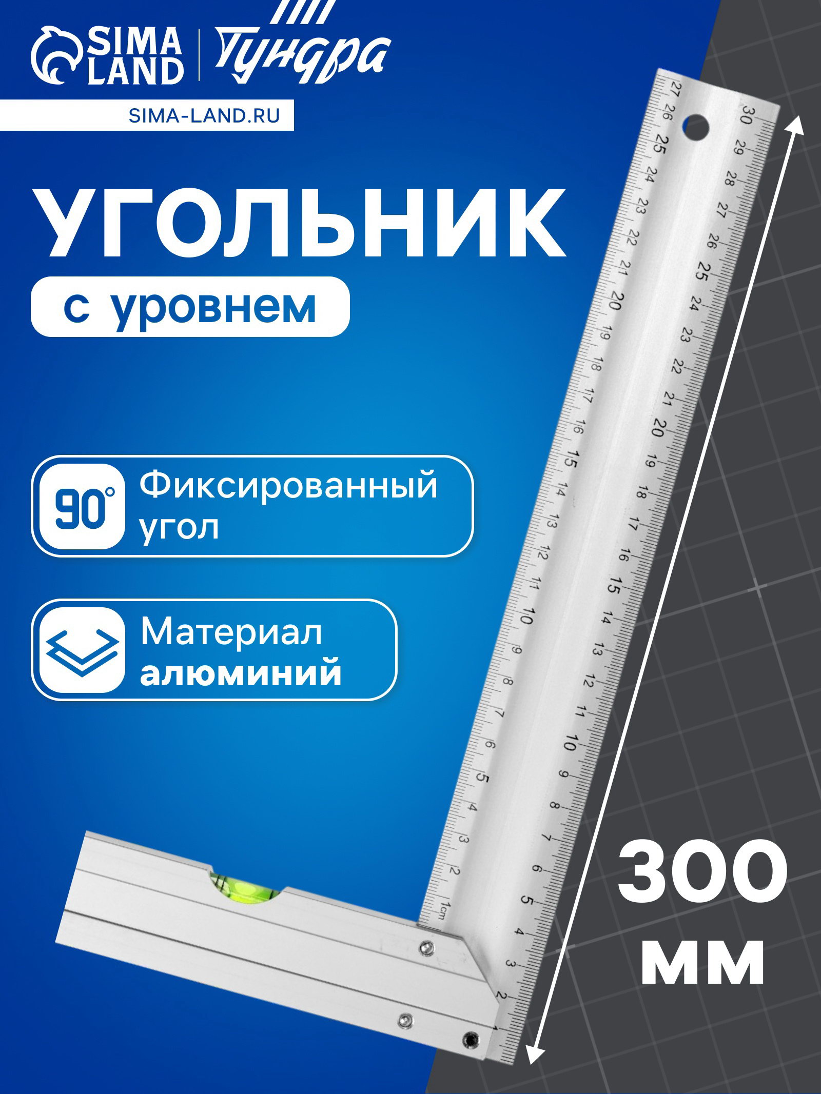 Угольник алюминиевый с уровнем 300 мм, 16.5x30.5x1.5 см., ТУНДРА, Китай
