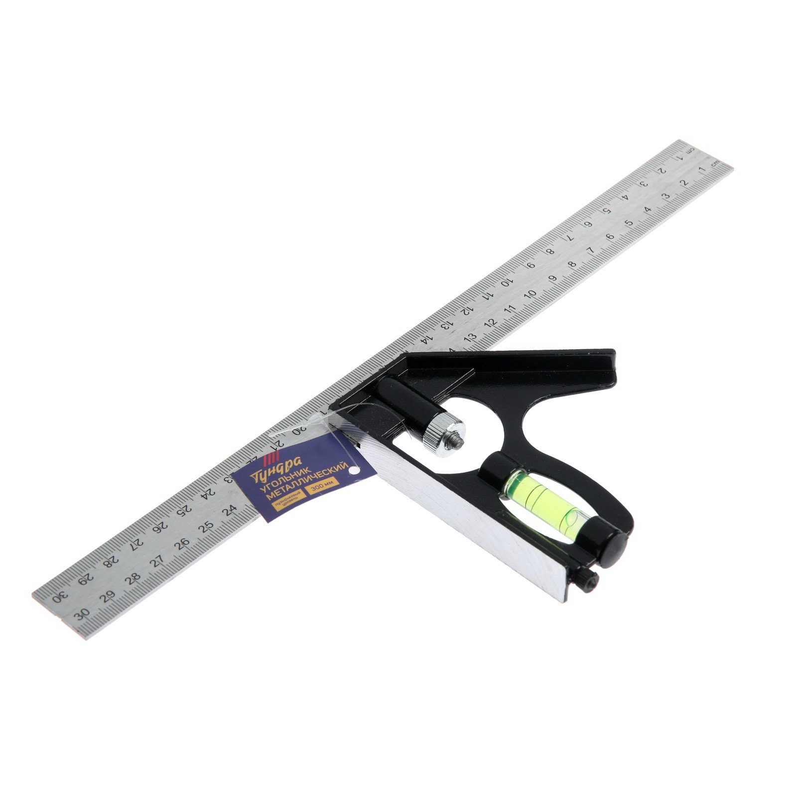 Угольник металлический комбинированный с уровнем, 300 мм, ТУНДРА, Китай