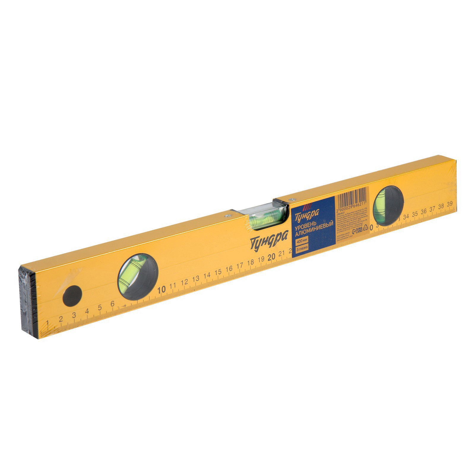 Уровень алюминиевый 3 глазка, линейка, 400 мм, ТУНДРА, Китай