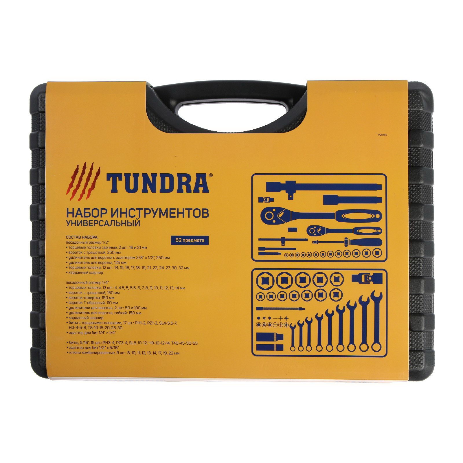 Набор инструментов в кейсе автомобильный, CrV, 1/2"и 1/4", 82 предмета, ТУНДРА, Китай