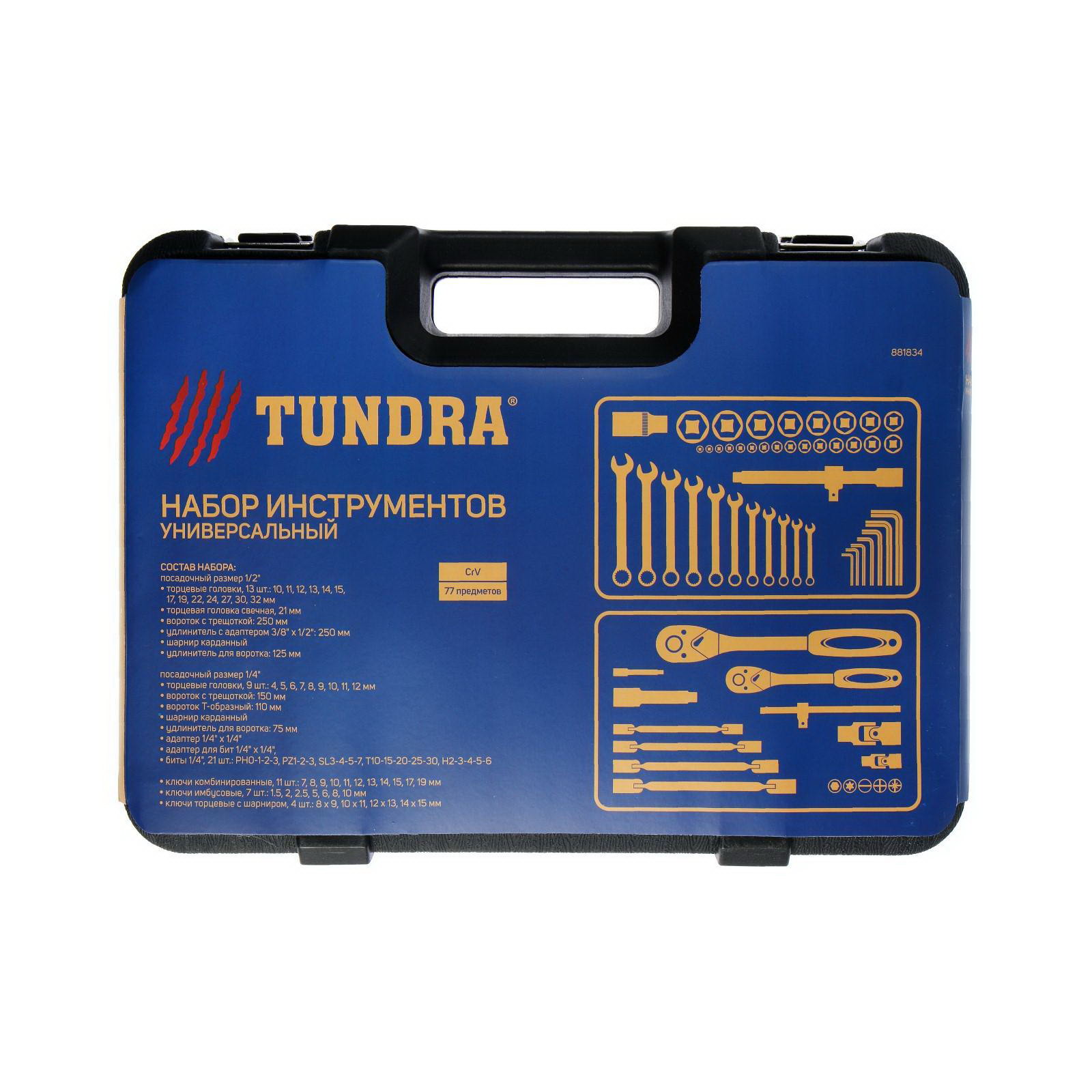 Набор инструментов в кейсе автомобильный, CrV, 1/2"и 1/4", 77 предметов, ТУНДРА, Китай