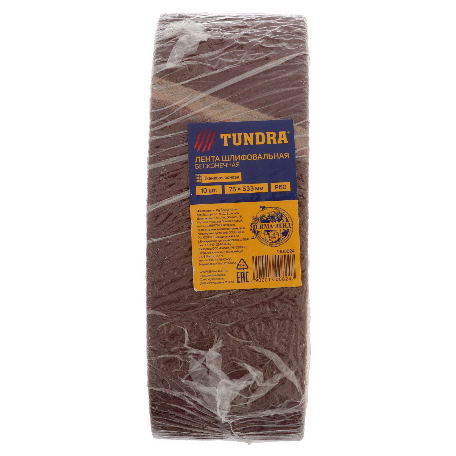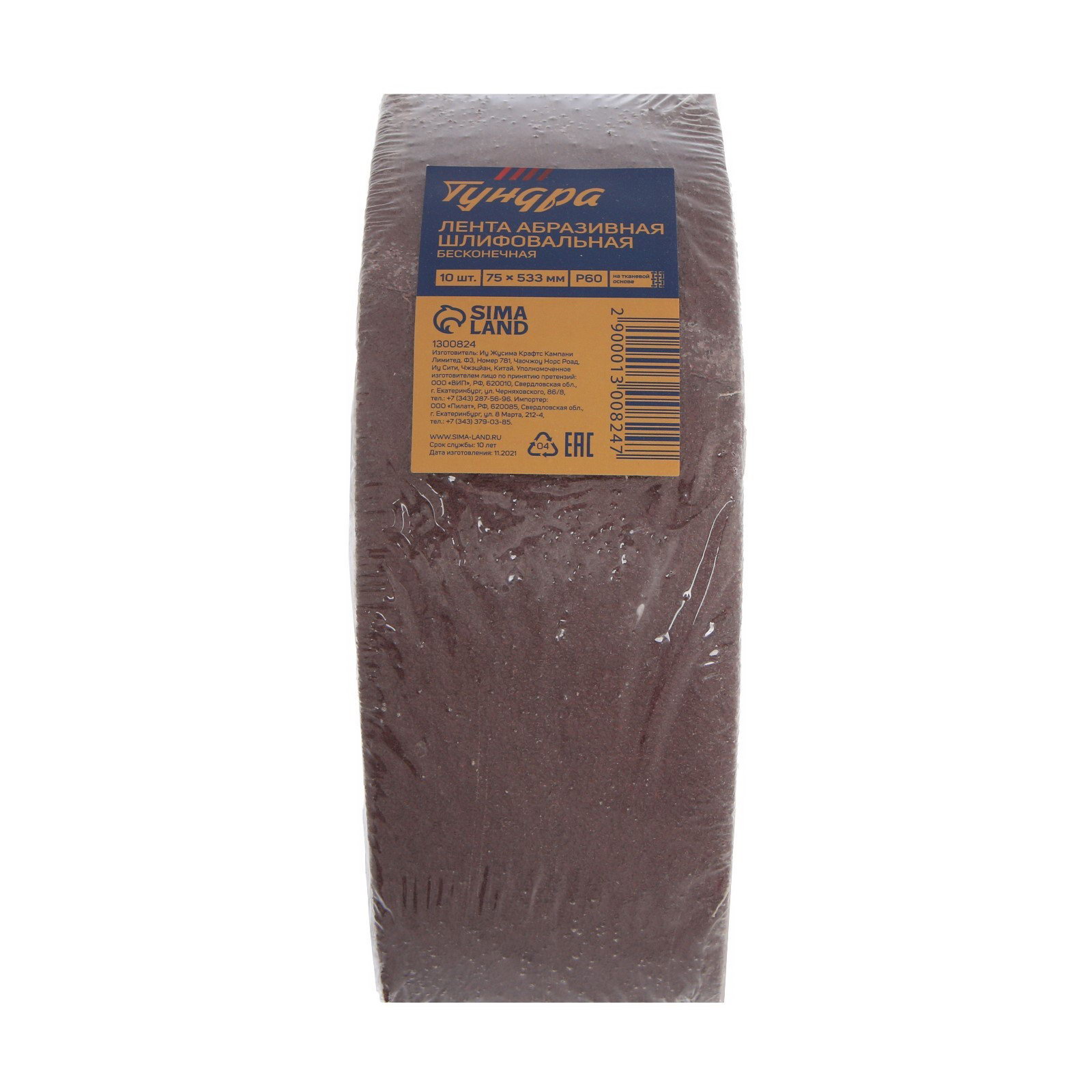 Лента абразивная бесконечная на тканевой основе, 75x533 мм, Р60, 10 шт., 7.5x25x7 см., ТУНДРА, Китай