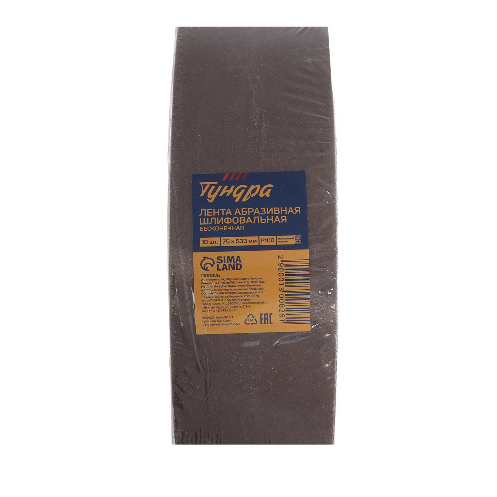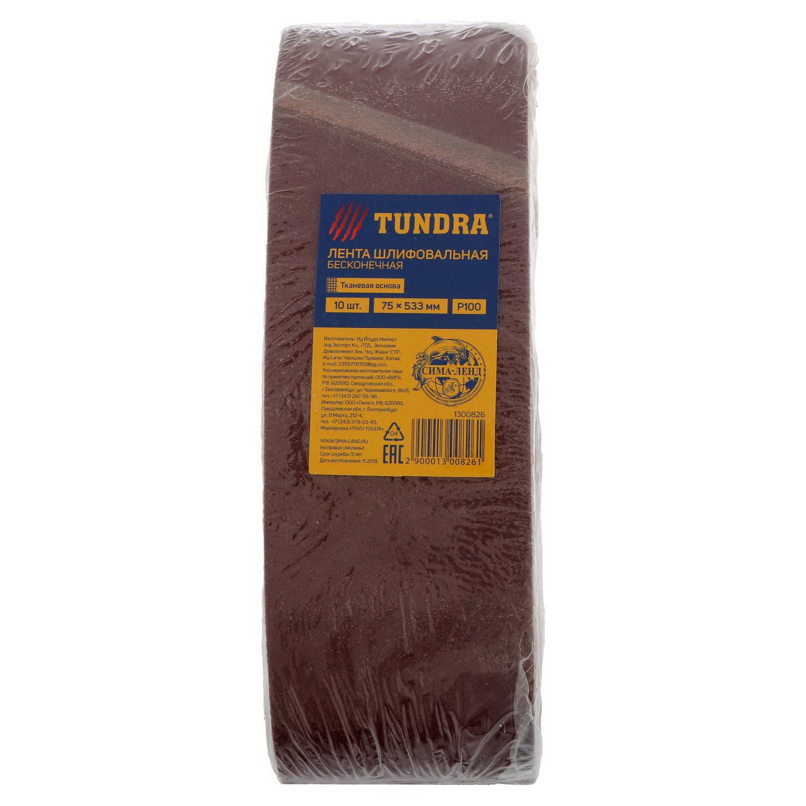 Лента абразивная бесконечная на тканевой основе, 75x533 мм, Р100, 10 шт., 7.5x25x7 см., ТУНДРА, Китай