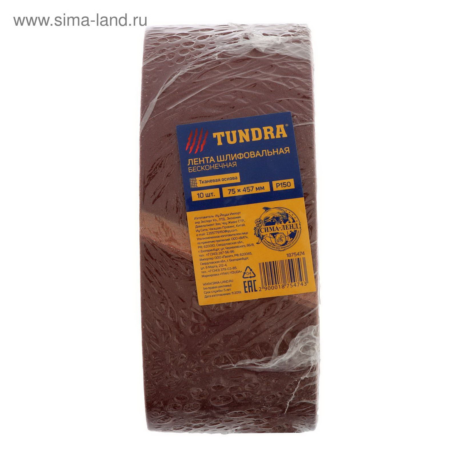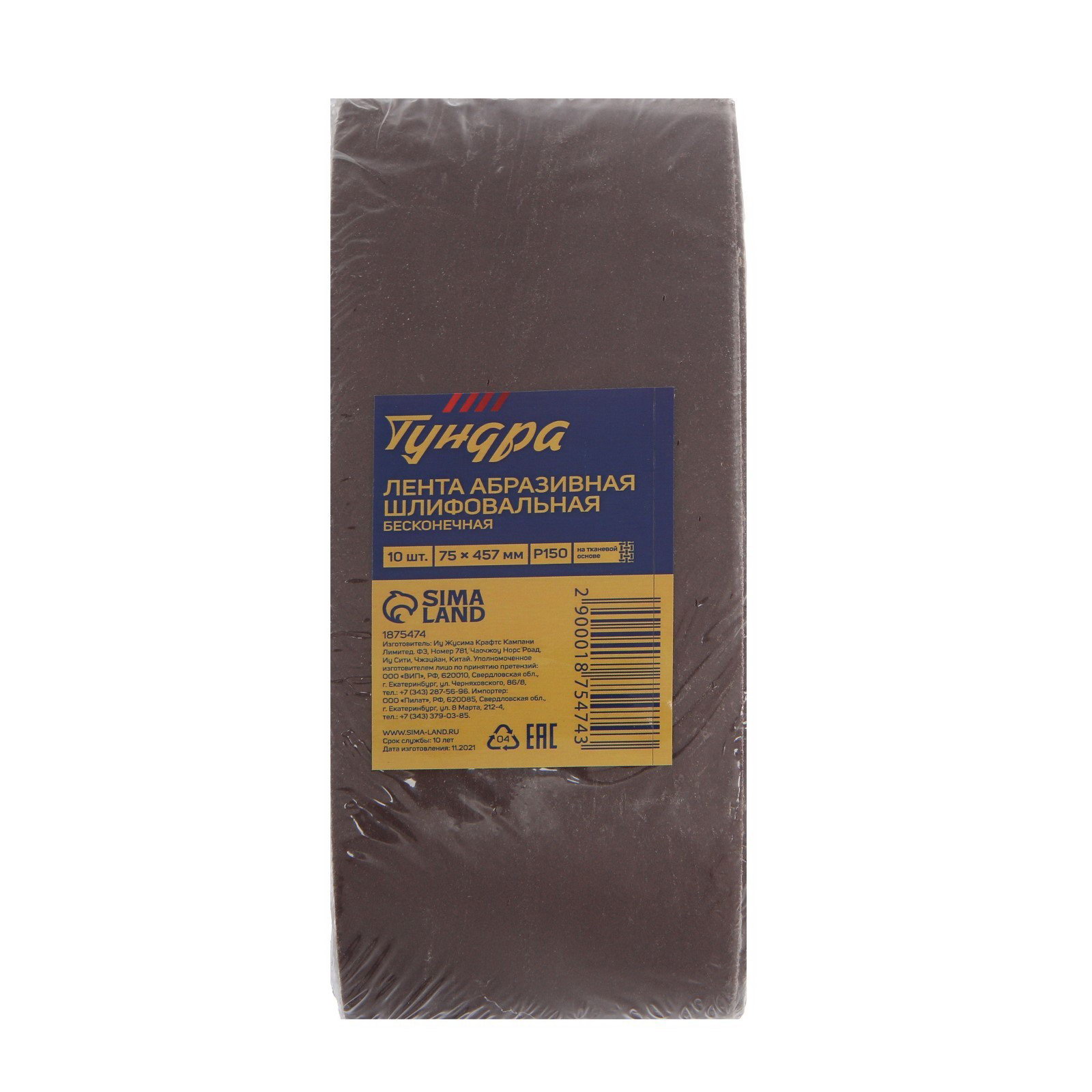 Лента абразивная бесконечная на тканевой основе, 75x457 мм, Р150, 10 шт., ТУНДРА, Китай