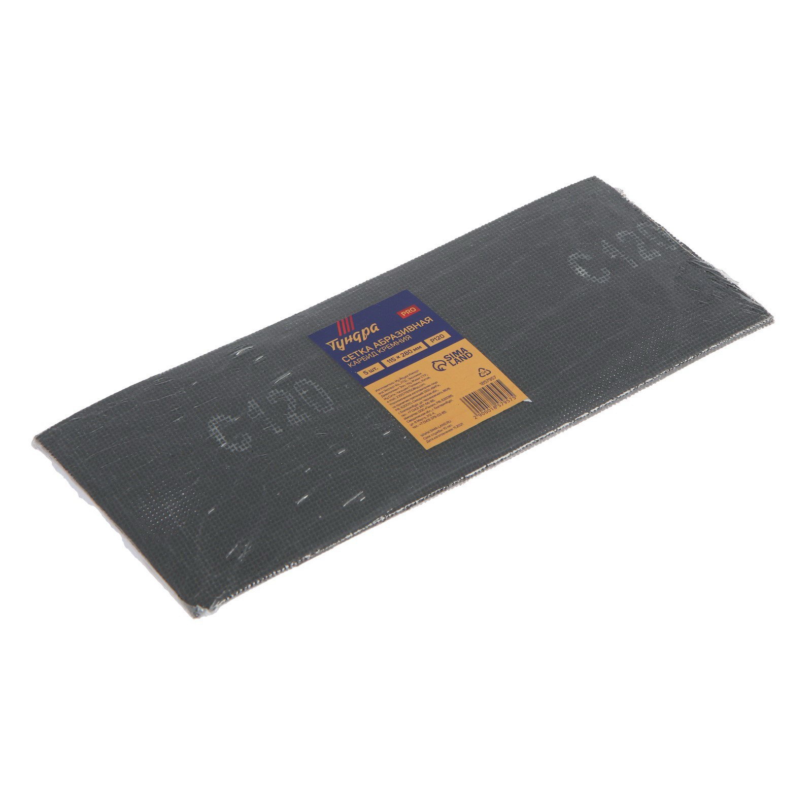 Сетка абразивная водостойкая, карбид кремния, 115x280 мм, Р120, 5 шт., ТУНДРА, Китай