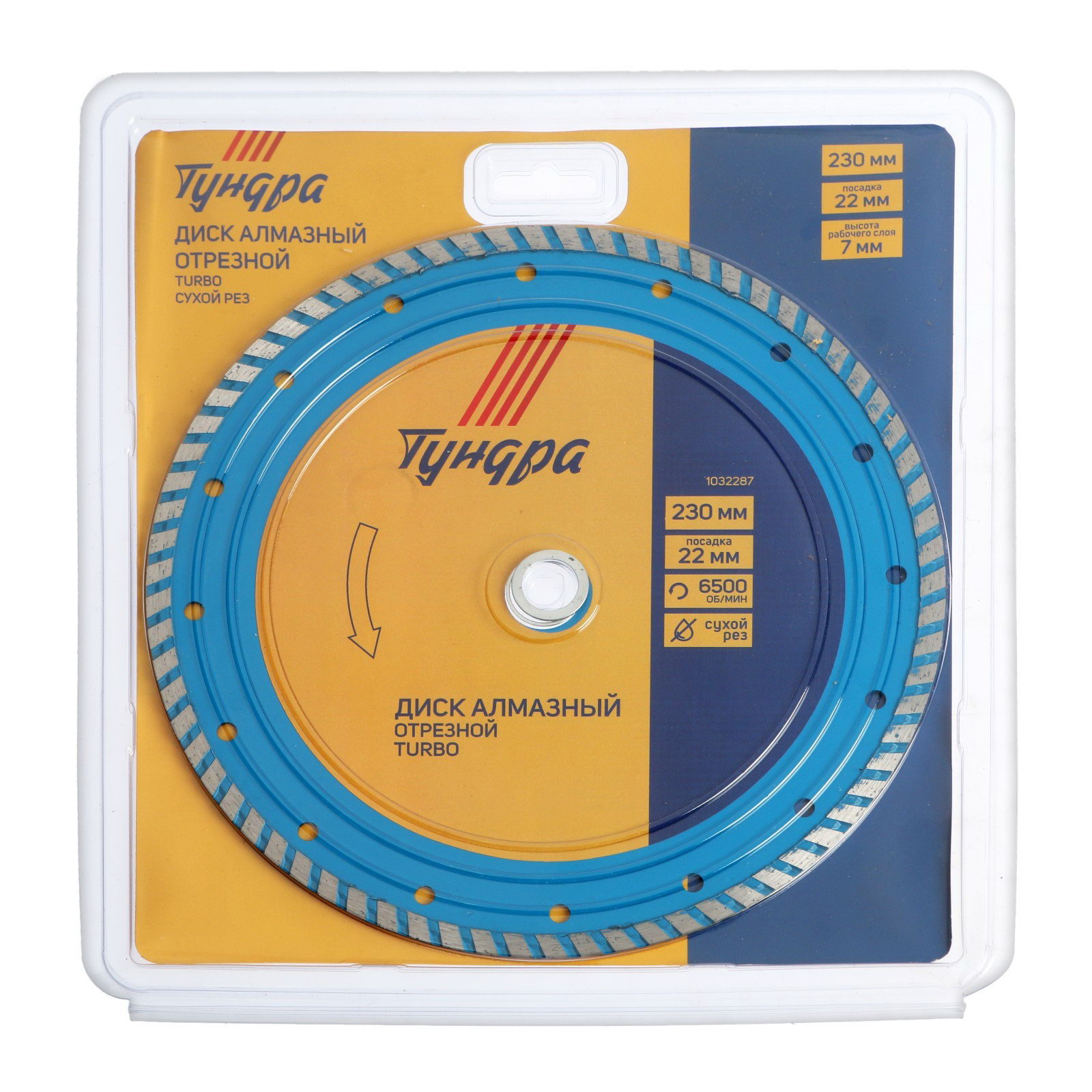 Диск алмазный отрезной TURBO, сухой рез, 230x22 мм, 2300 см., ТУНДРА, Китай
