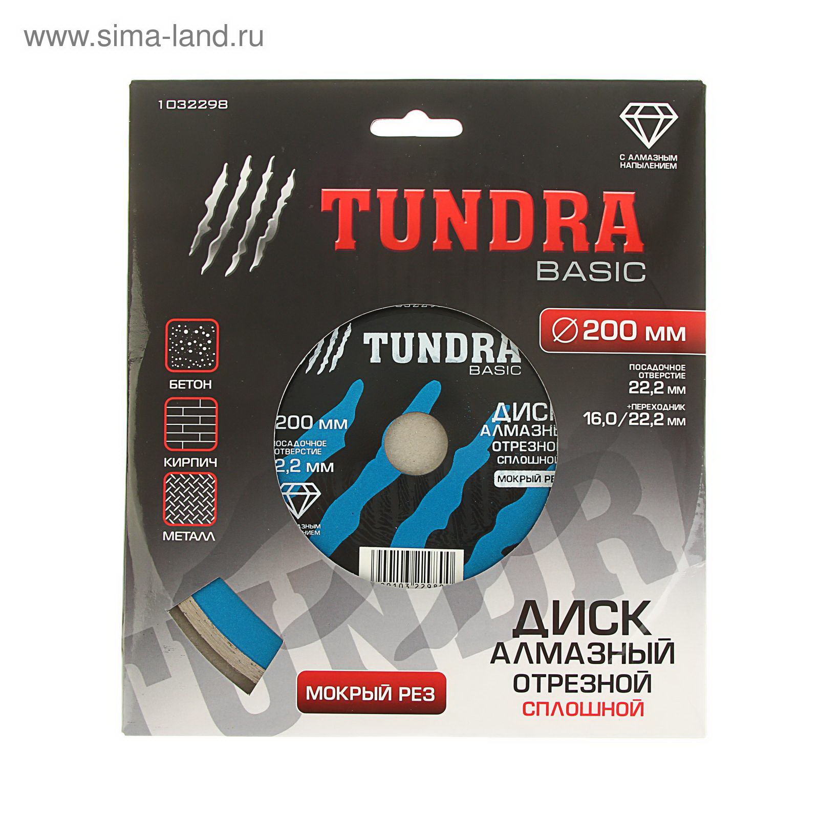 Диск алмазный отрезной сплошной, мокрый рез, 200x22 мм, 2000 см., ТУНДРА, Китай