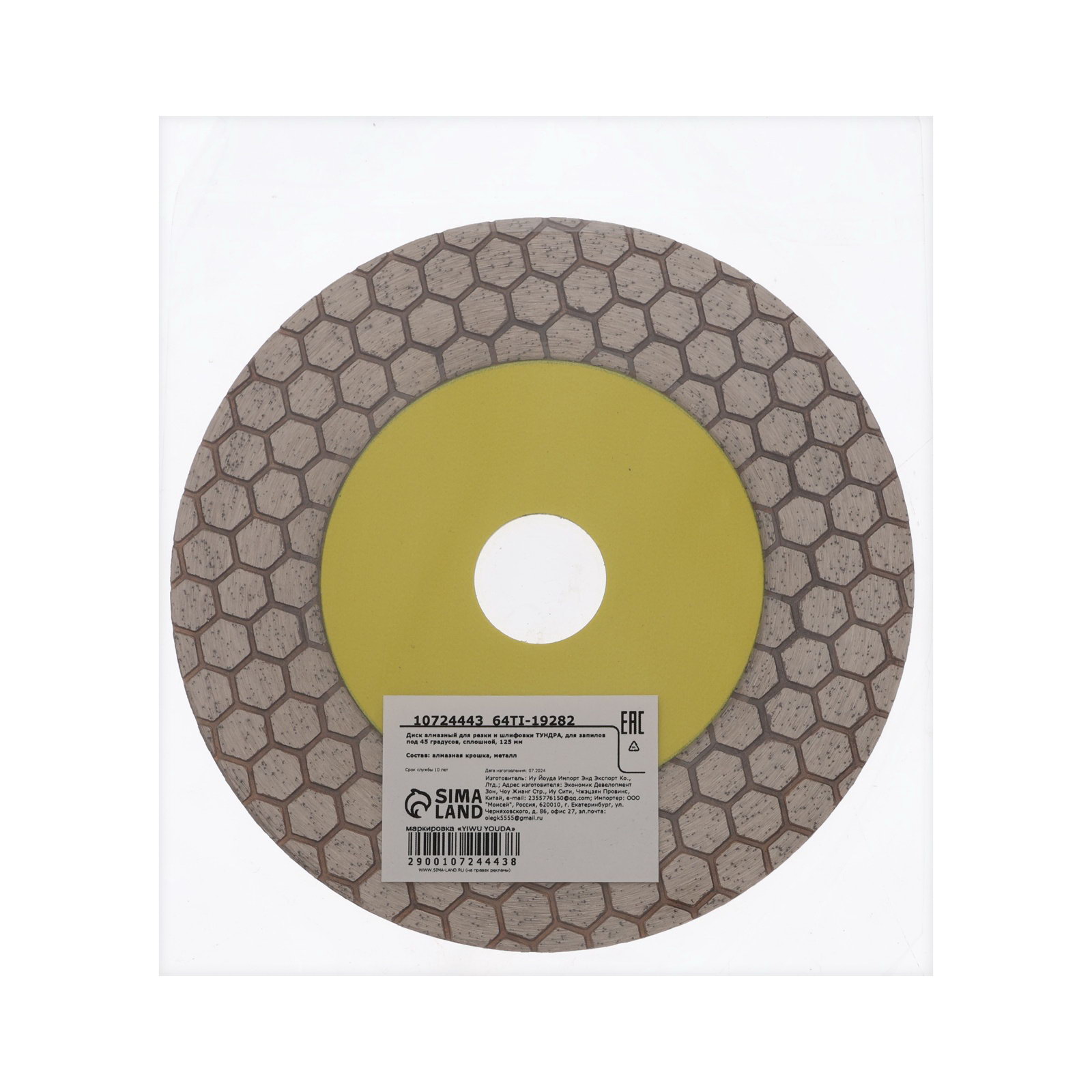 Диск алмазный для резки и шлифовки для запилов под 45 градусов, сплошной, 125 мм, 1250 см., ТУНДРА, Китай