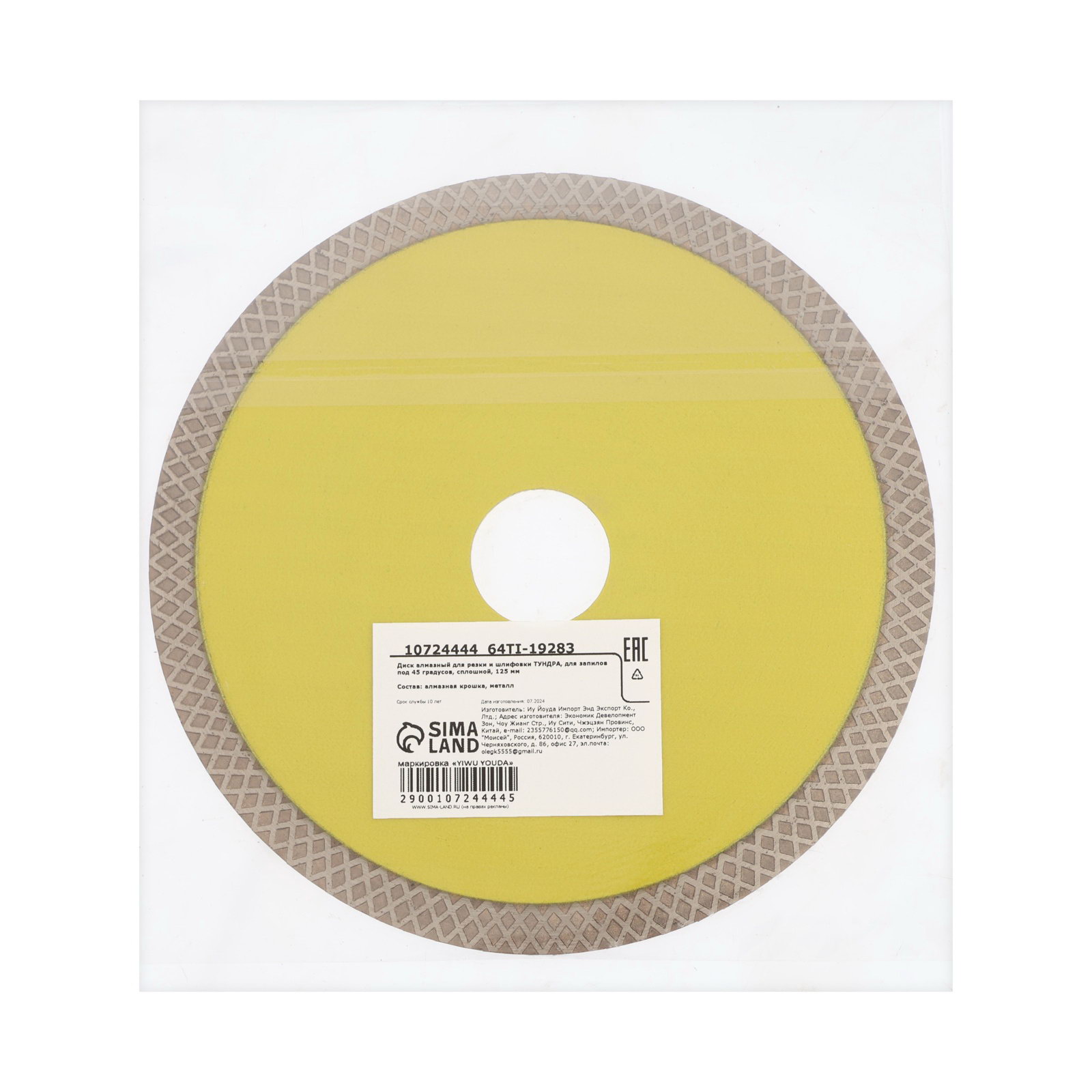 Диск алмазный для резки и шлифовки для запилов под 45 градусов, сплошной, 125 мм, 1250 см., ТУНДРА, Китай