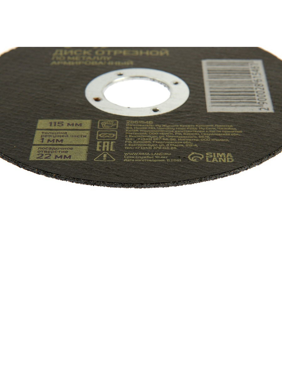 Круг отрезной по металлу армированный, 115x1.0x22 мм, 1150 см., ТУНДРА, Китай
