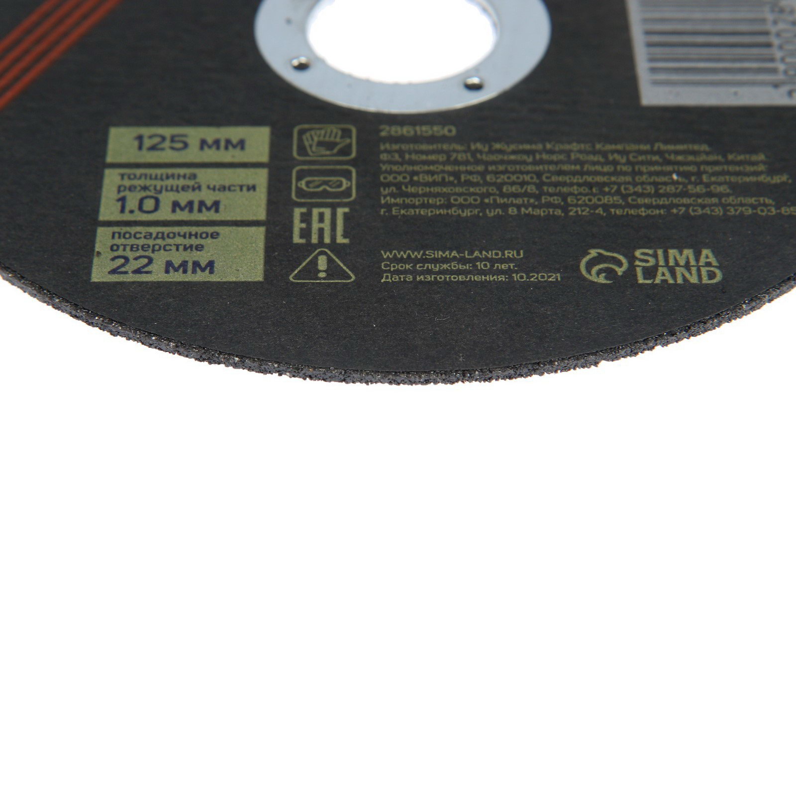 Круг отрезной по металлу армированный, 125x1.0x22 мм, 1250 см., ТУНДРА, Китай