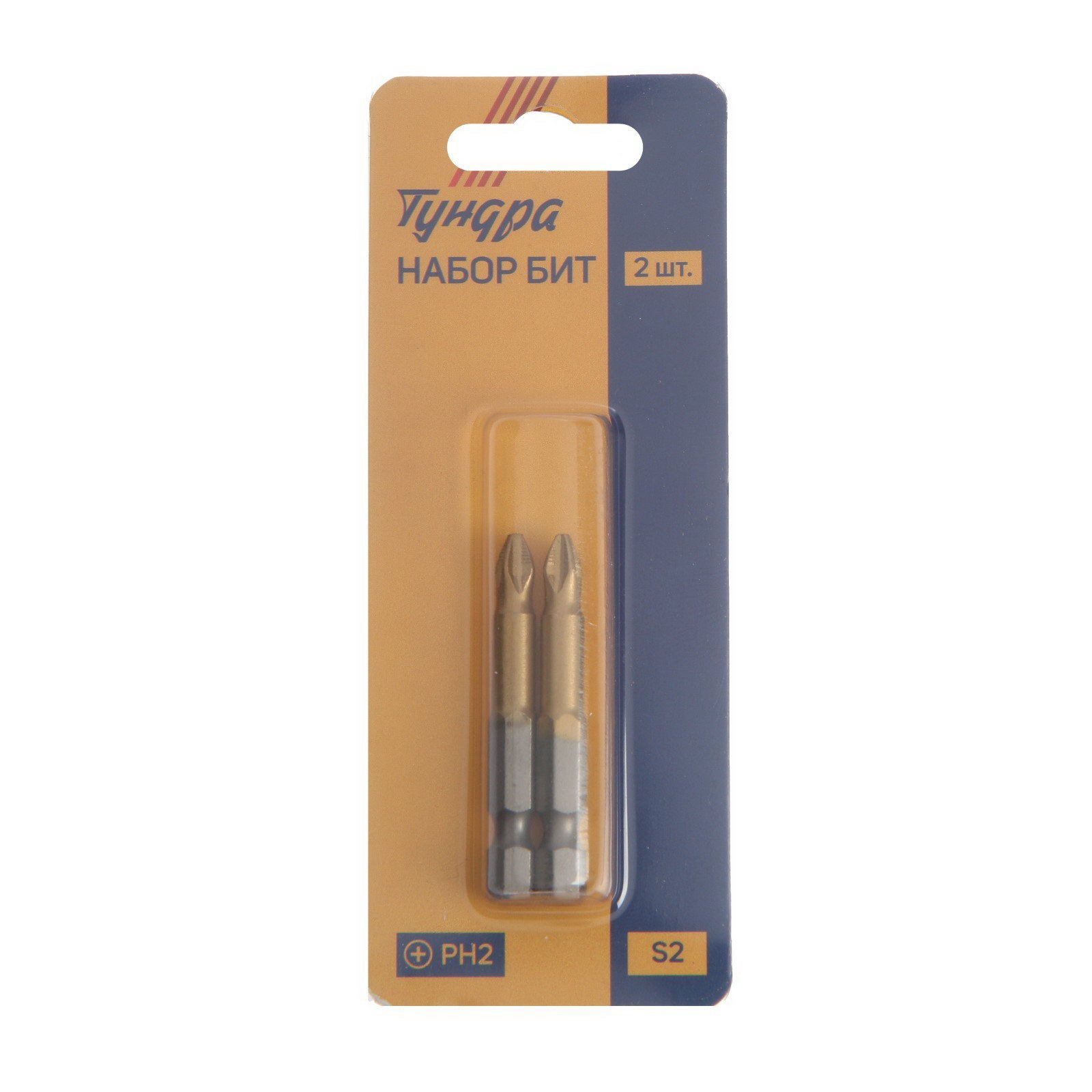 Биты намагниченные, сталь S2, 58-60 HRC, TiN, PH2 x 50 мм, 2 шт., ТУНДРА, Китай