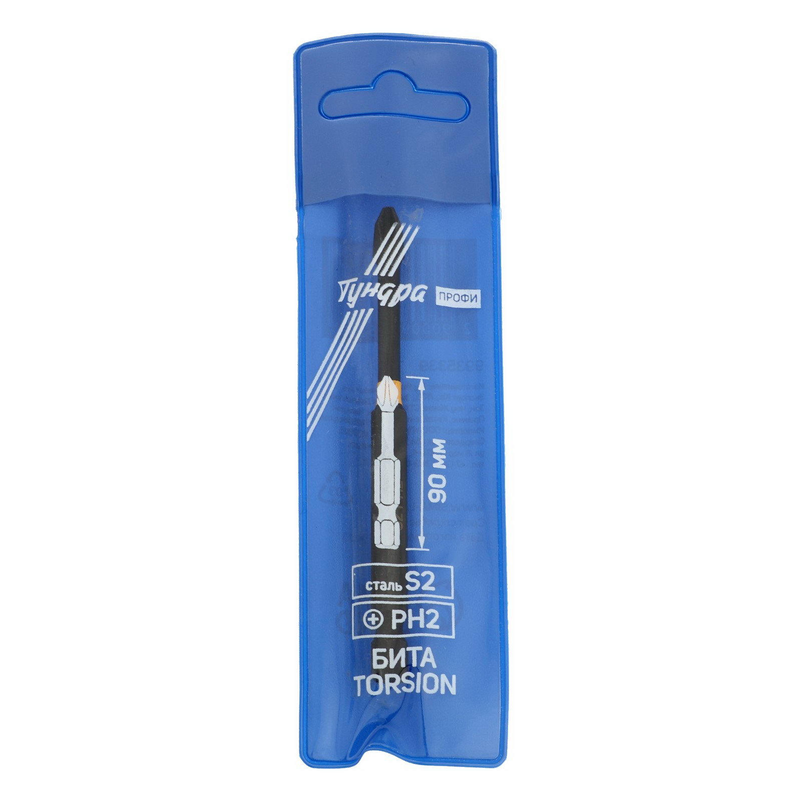Бита ПРОФИ, Torsion, сталь S2, PH2 x 90 мм, пвх-чехол, ТУНДРА, Китай