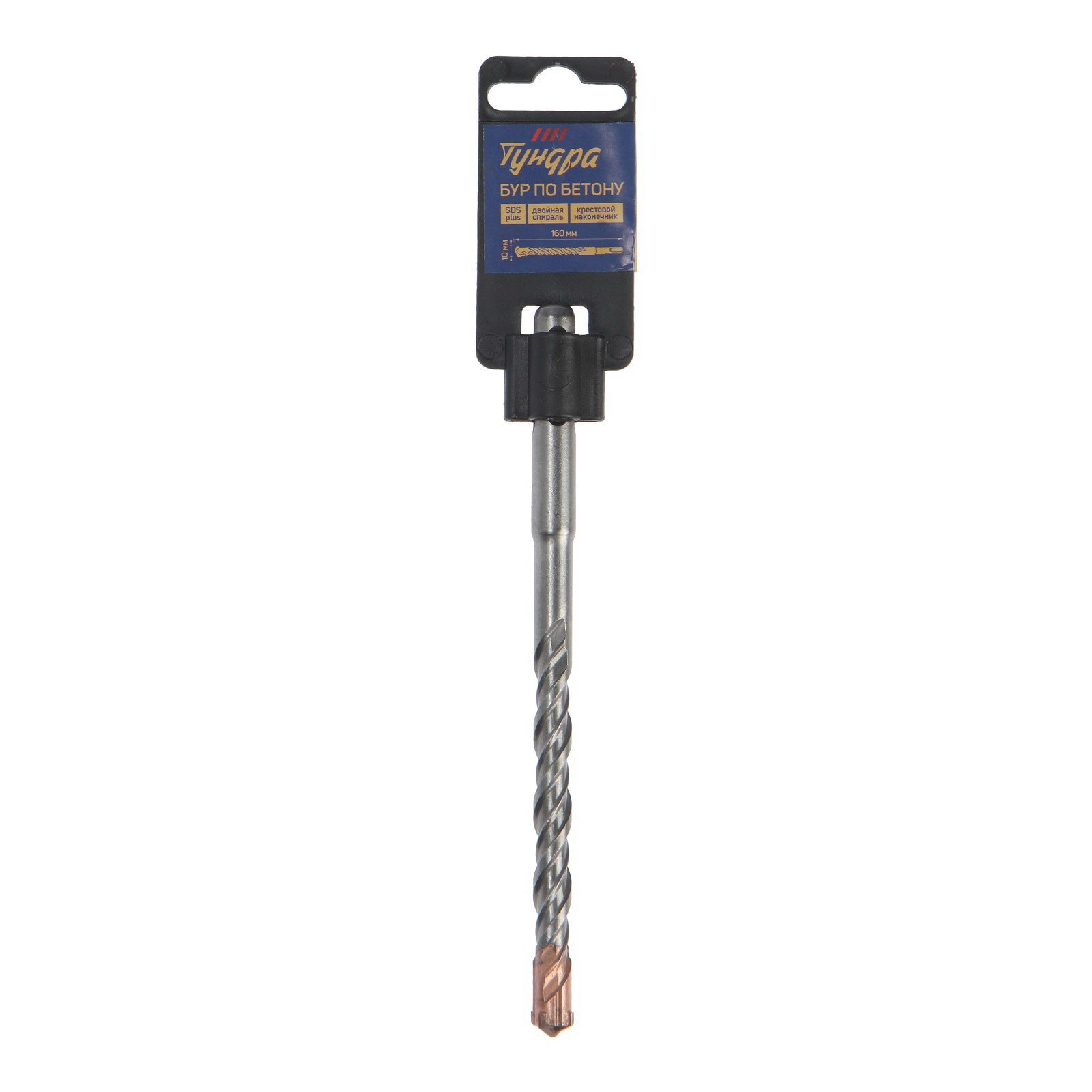 Бур по бетону крестовый наконечник, двойная спираль, SDS-plus, 10 x 160 мм, 100 см., ТУНДРА, Китай