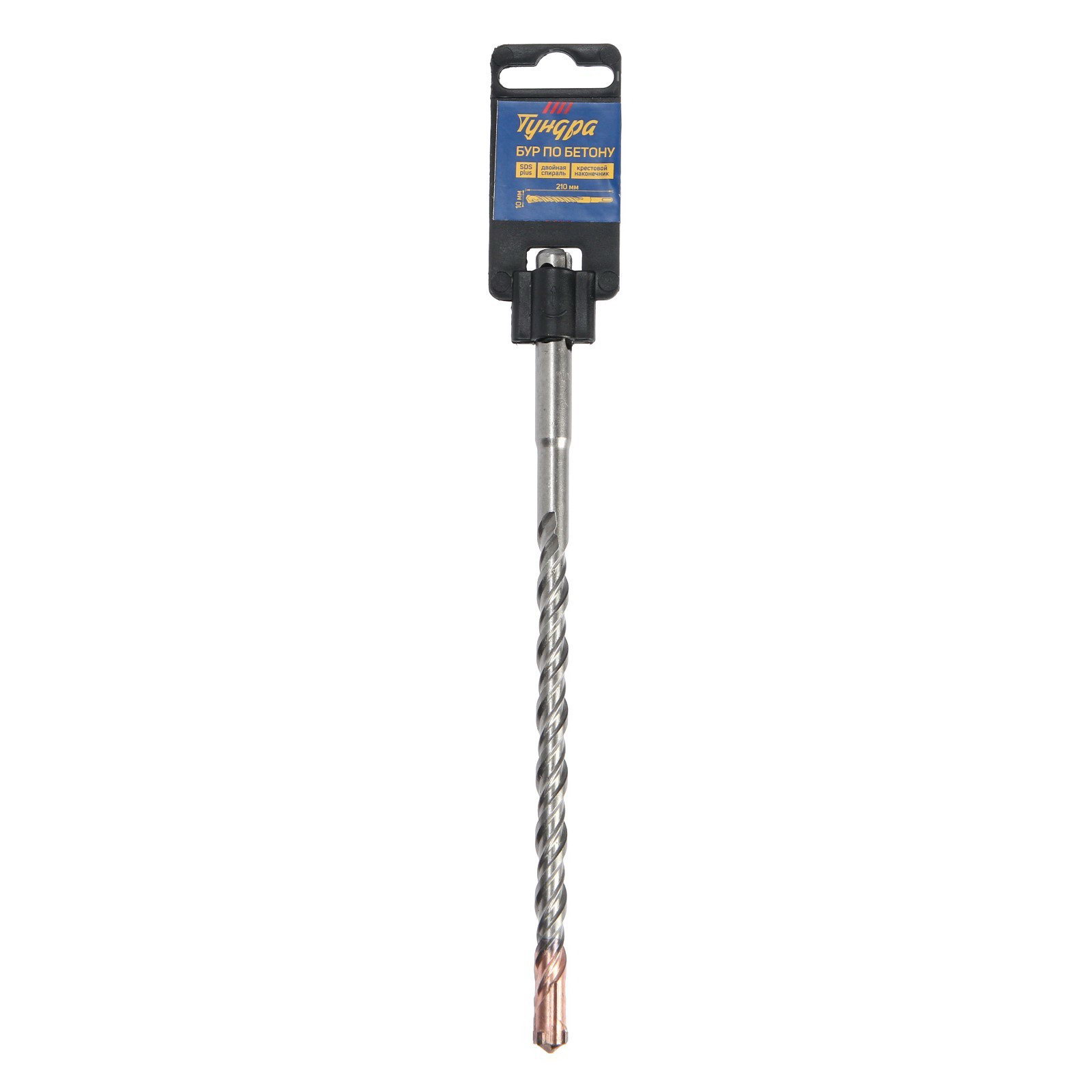 Бур по бетону крестовый наконечник, двойная спираль, SDS-plus, 10 x 210 мм, 100 см., ТУНДРА, Китай