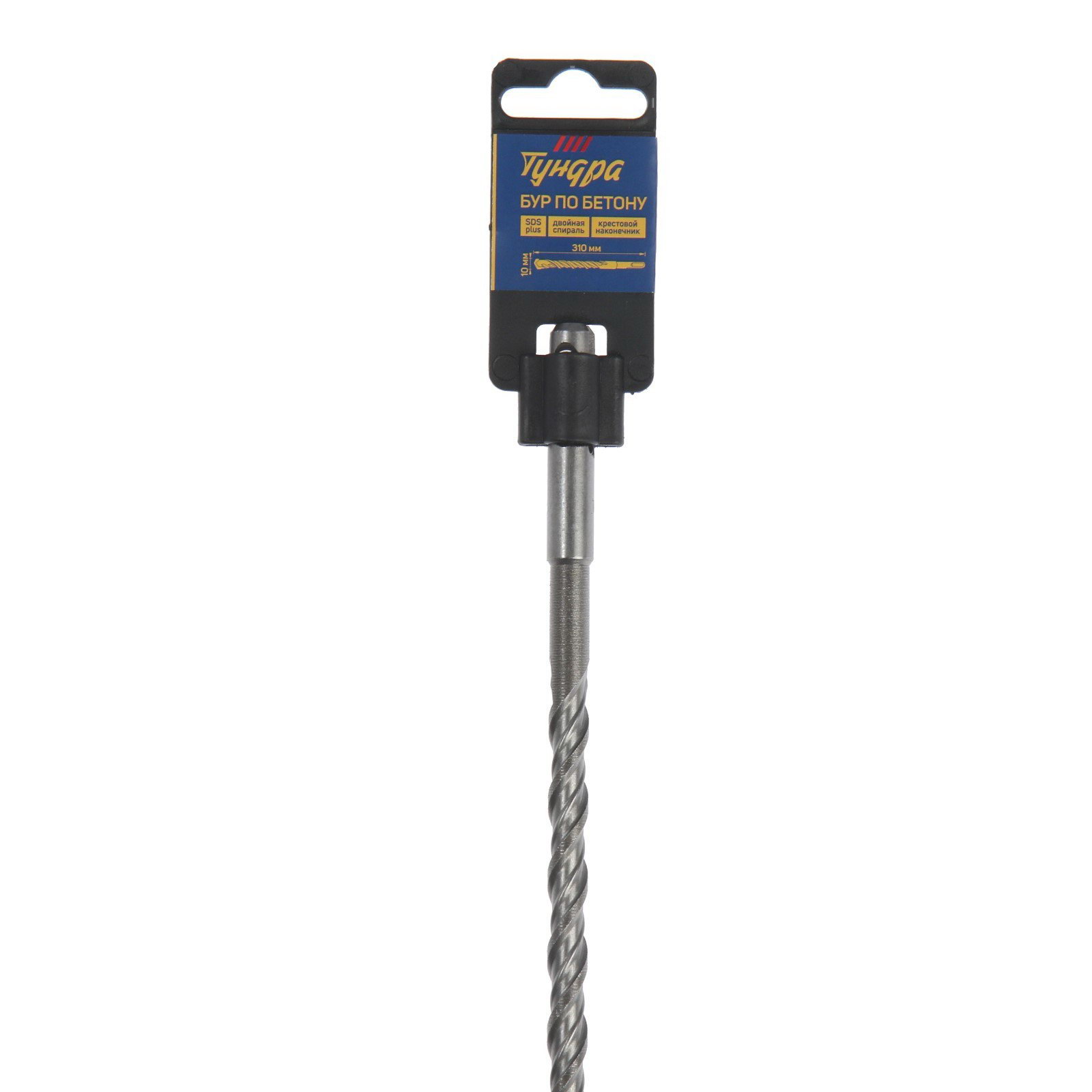 Бур по бетону крестовый наконечник, двойная спираль, SDS-plus, 10 x 310 мм, 100 см., ТУНДРА, Китай