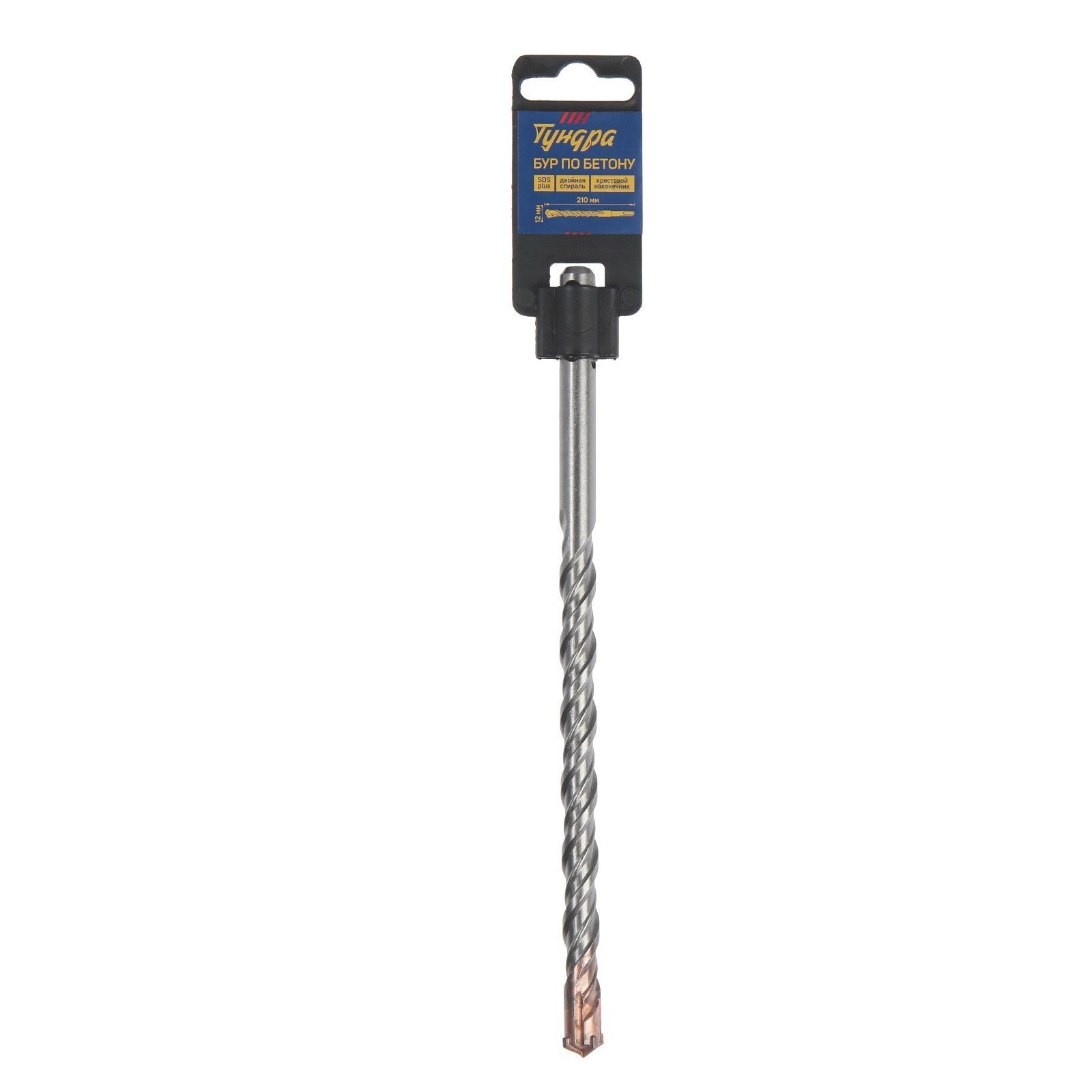 Бур по бетону крестовый наконечник, двойная спираль, SDS-plus, 12x210 мм, 120 см., ТУНДРА, Китай