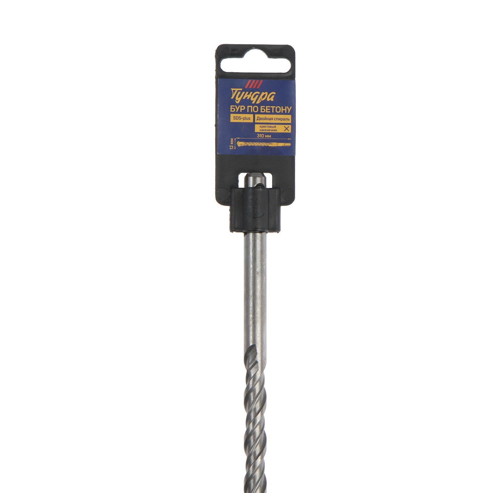 Бур по бетону крестовый наконечник, двойная спираль, SDS-plus, 12 x 310 мм, 120 см., ТУНДРА, Китай