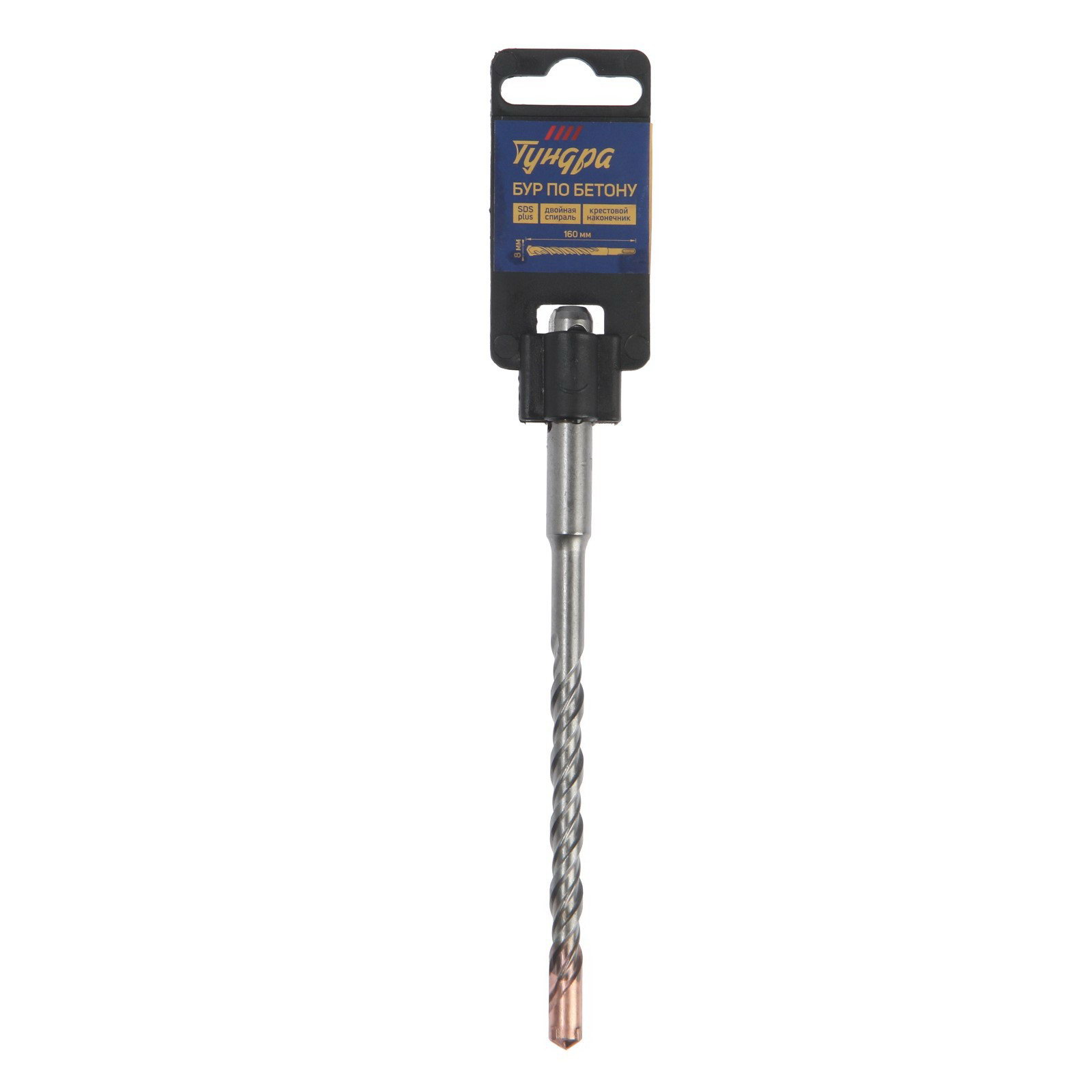 Бур по бетону крестовый наконечник, двойная спираль, SDS-plus, 8 x 160 мм, 80 см., ТУНДРА, Китай