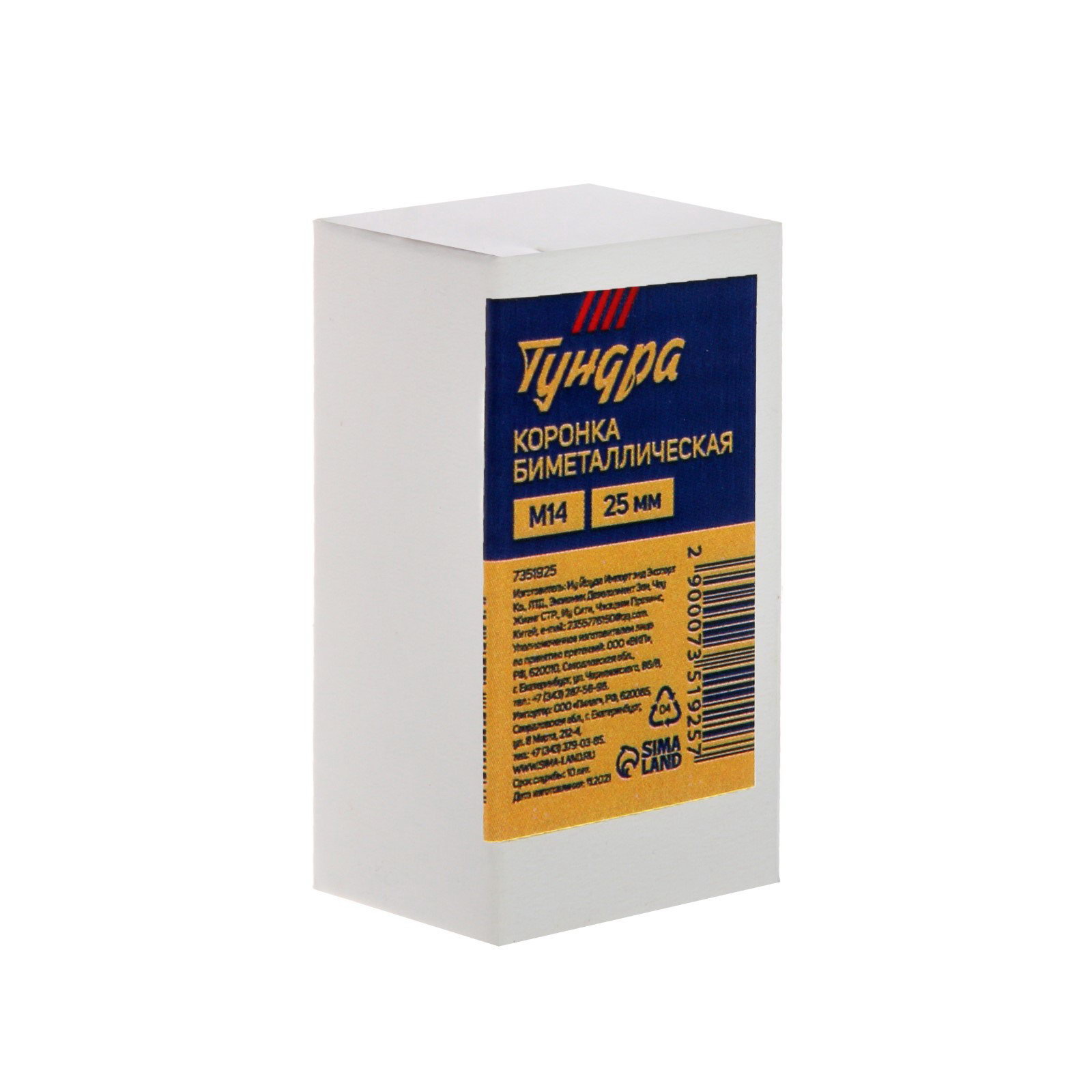 Коронка биметаллическая 25 мм, M14, 250 см., ТУНДРА, Китай