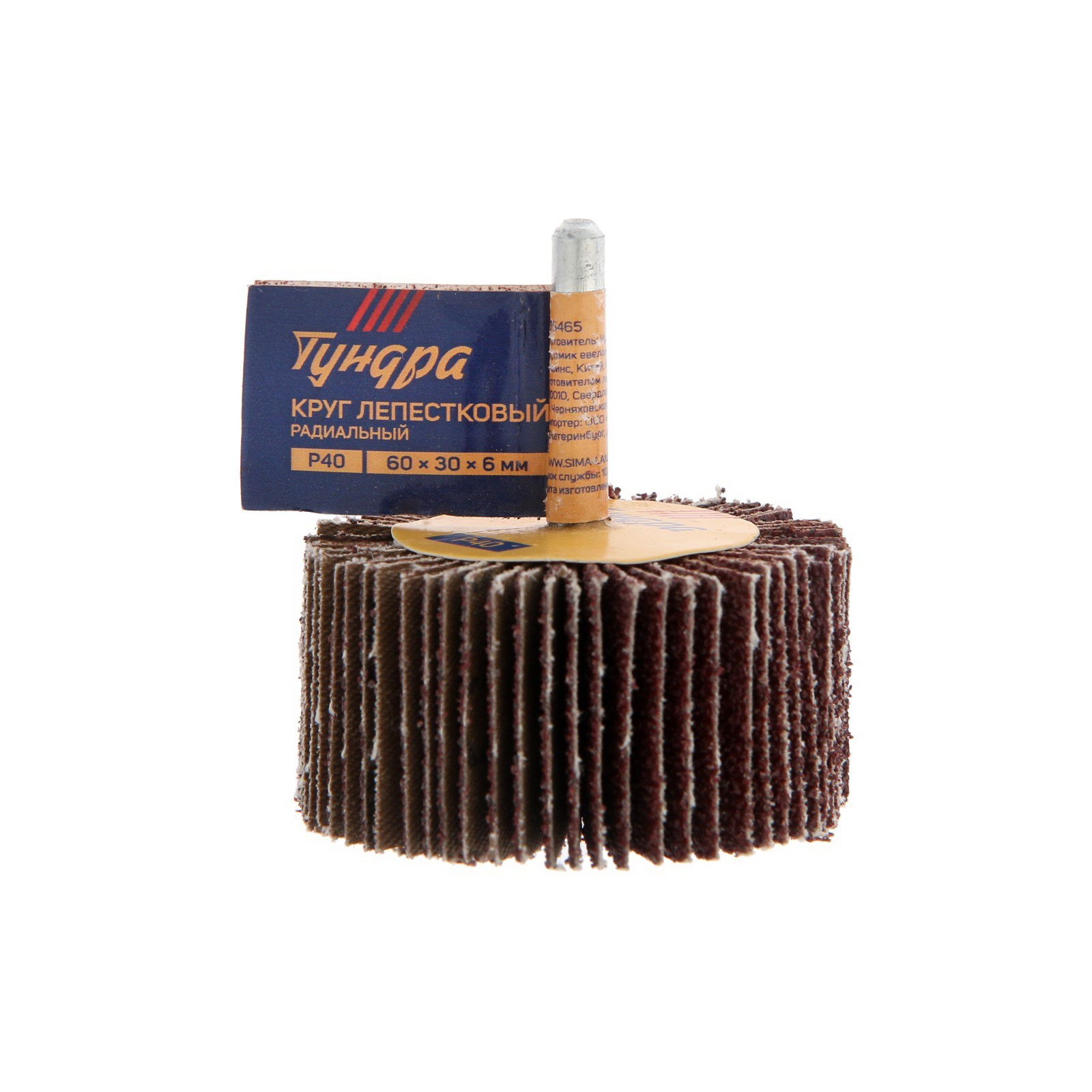 Круг лепестковый радиальный 60x30x6 мм, Р40, 600 см., ТУНДРА, Китай