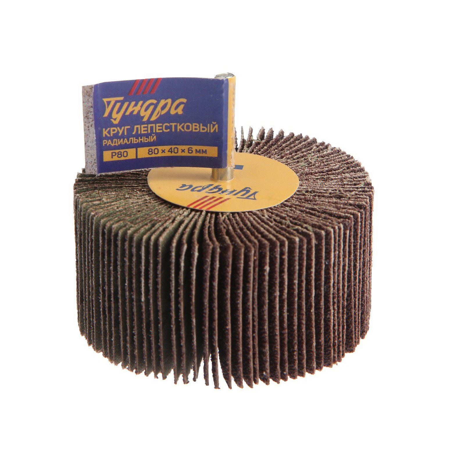 Круг лепестковый радиальный 80x40x6 мм, Р80, 800 см., ТУНДРА, Китай