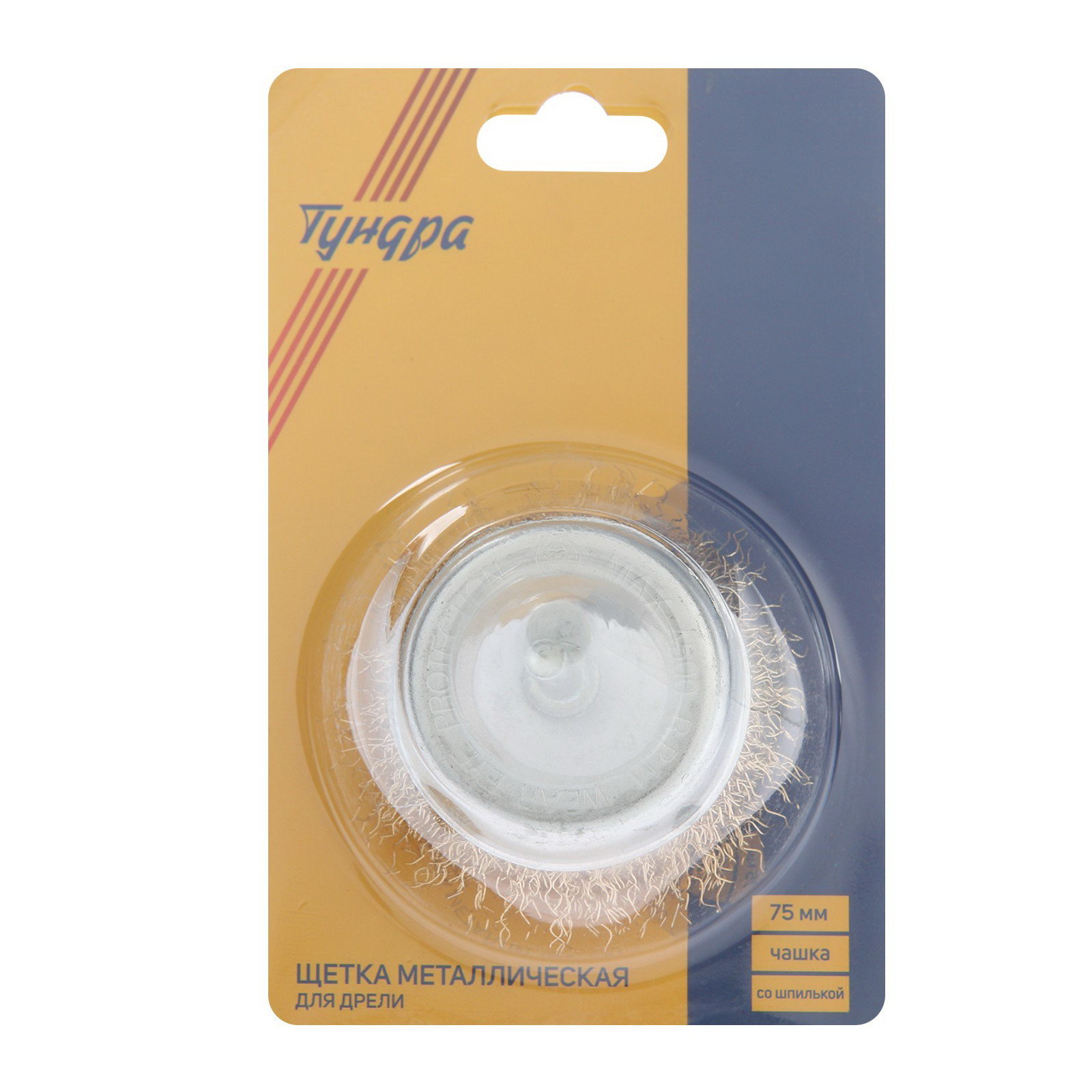 Щетка металлическая для дрели со шпилькой, "Чашка", 75 мм, 750 см., ТУНДРА, Китай