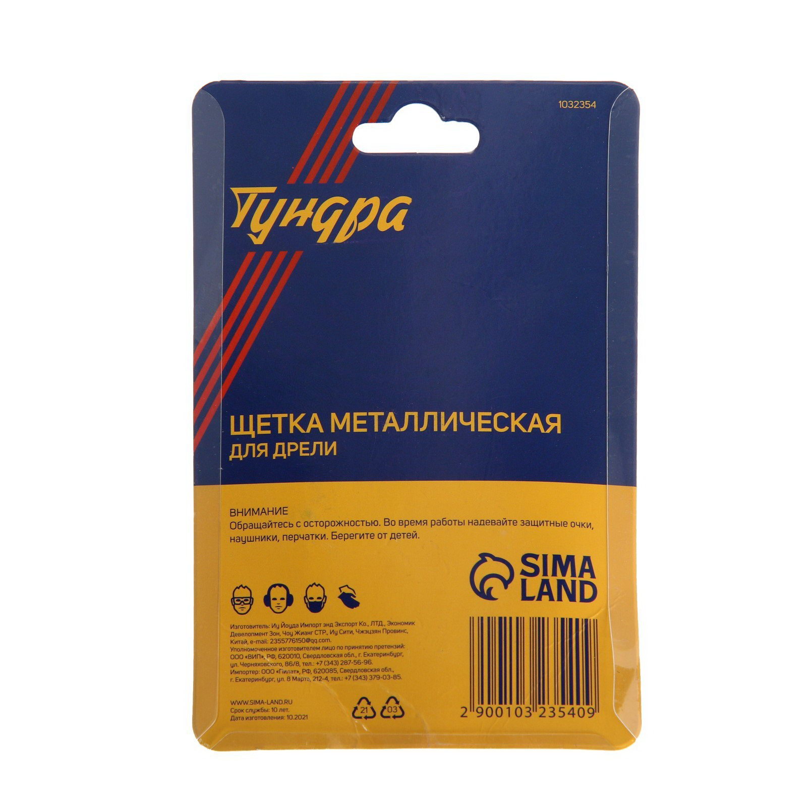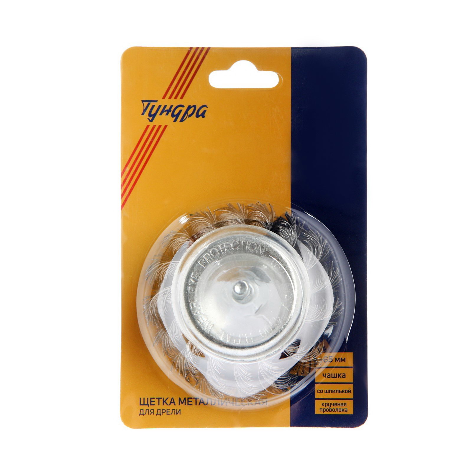 Щетка металлическая для дрели со шпилькой, крученая проволока, "Чашка", 65 мм, 650 см., ТУНДРА, Китай